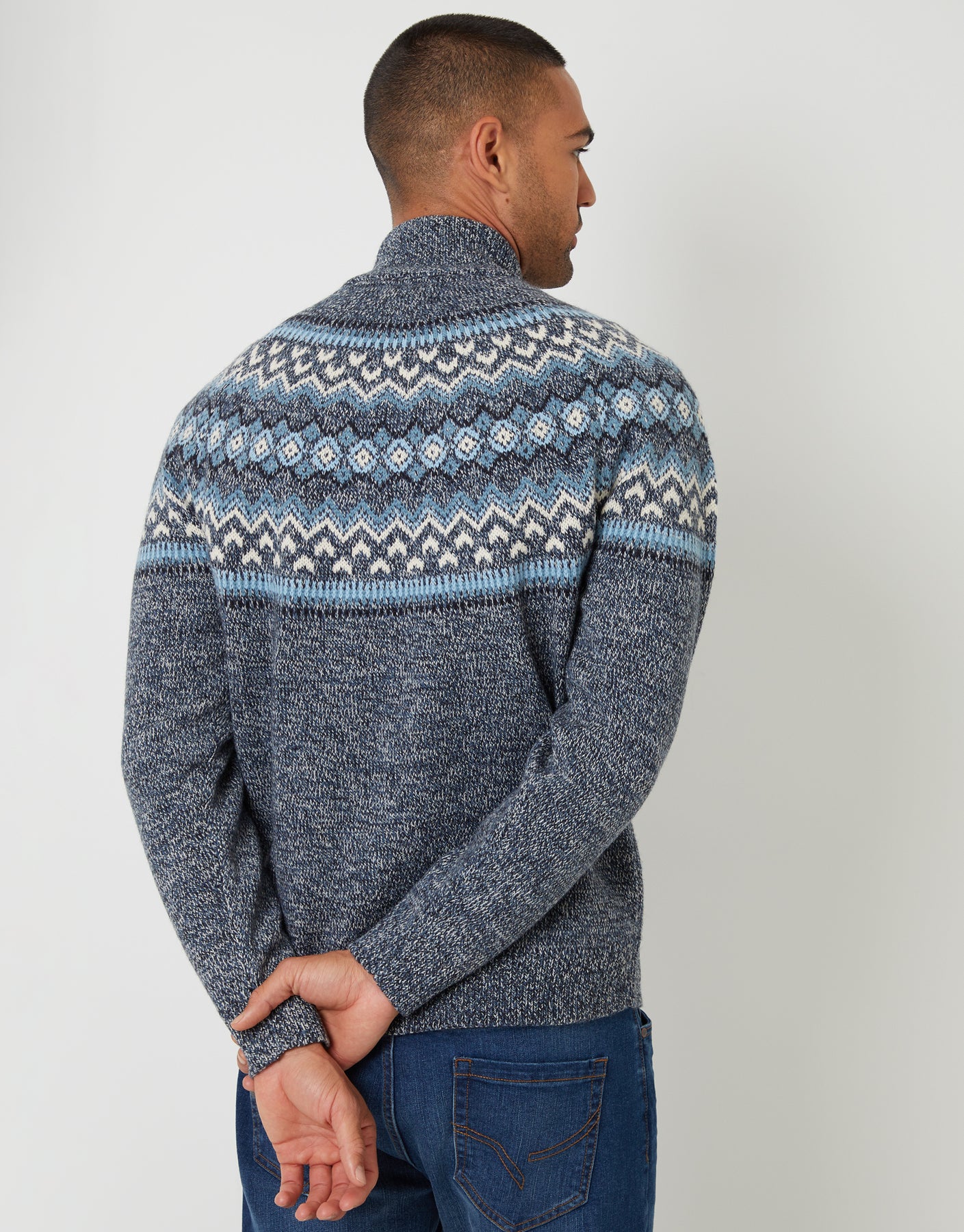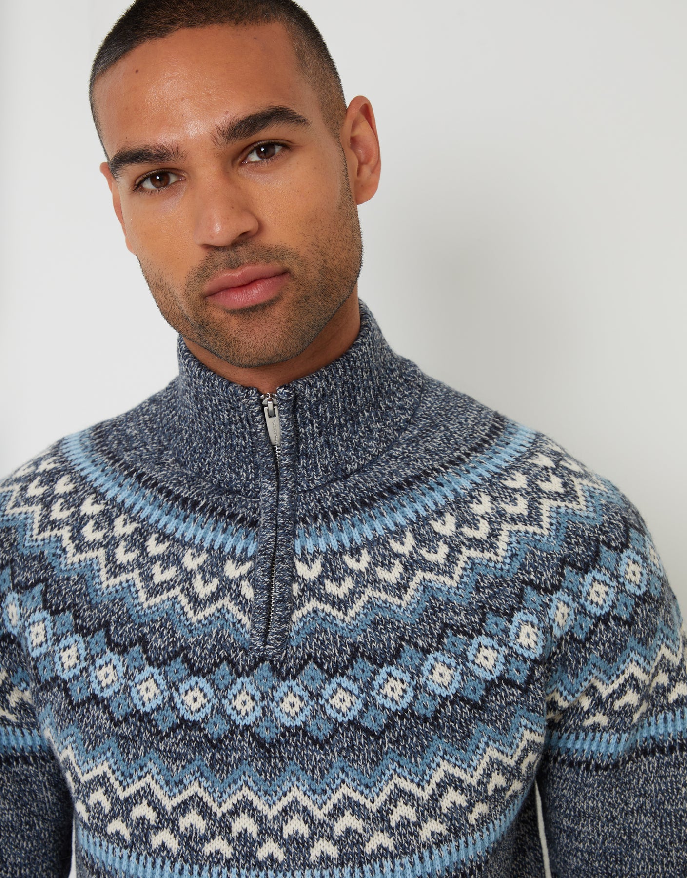 Navy Fairisle Knitted Quarter Zip Jumper