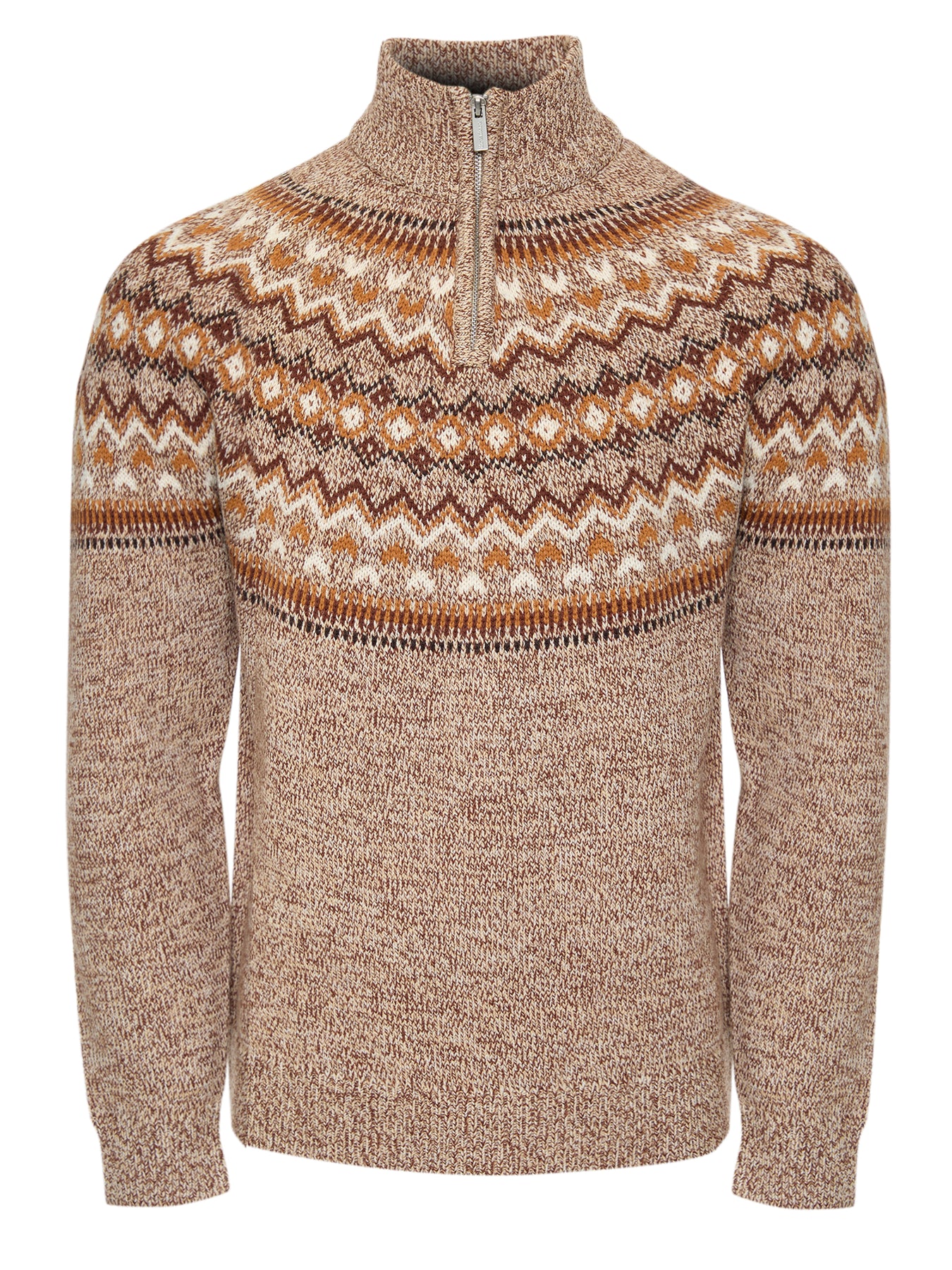 Taupe Fairisle Knitted Quarter Zip Jumper