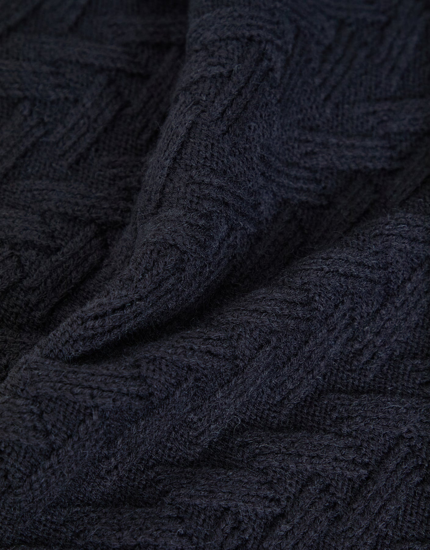 Navy Mock Neck Funnel Neck Cable Knit Jumper