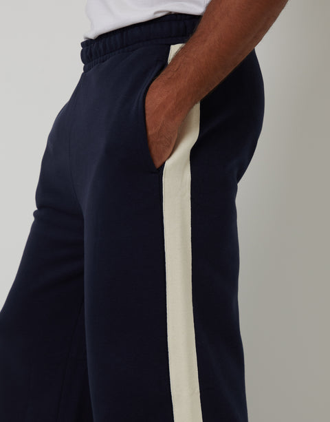 Navy Wide Leg Side Stripe Joggers