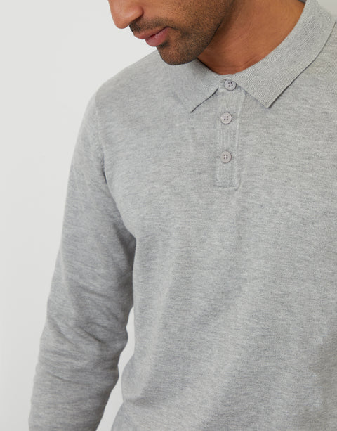 Grey Marl Knitted Long Sleeve Polo Jumper