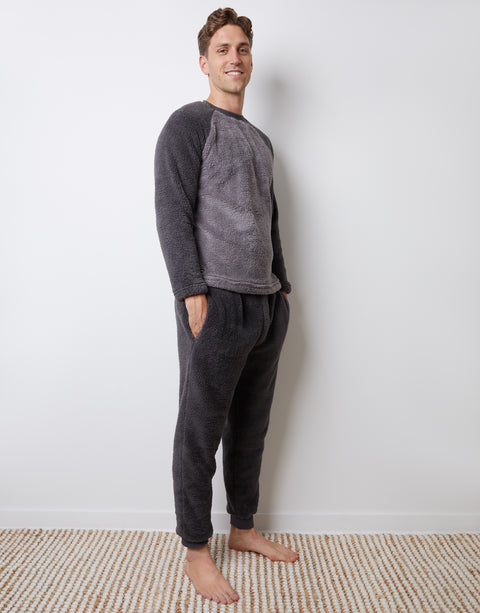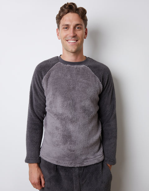 Charcoal Grey Borg Raglan Sweatshirt Lounge Set (2-Piece Set)