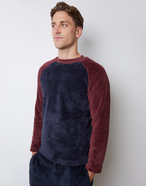 Burgundy Borg Raglan Sweatshirt Lounge Set (2-Piece Set)