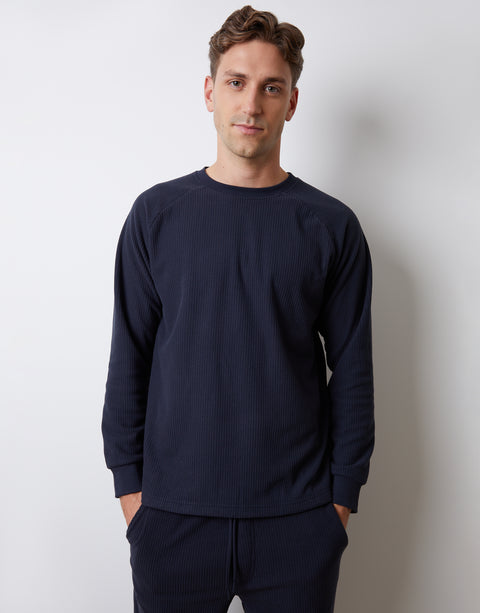 Navy Textured Crew Neck Sweatshirt