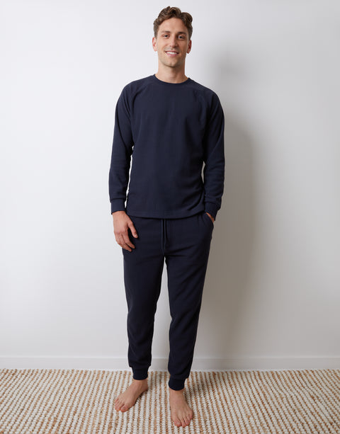 Navy Waffle Textured Fleece Loungewear Set (2-Piece Set)