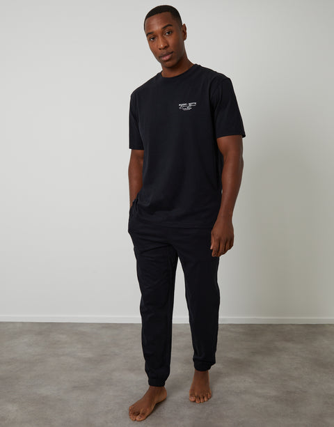 Black Peached Cotton Graphic Lounge Set (2-Piece Set)