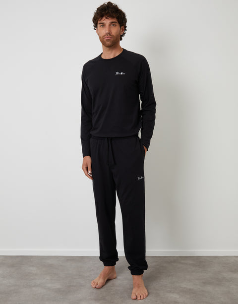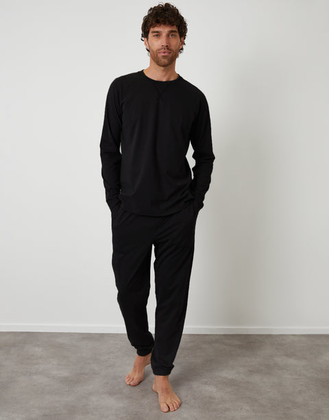 Black Peached Cotton Long Lounge Set (2-Piece Set)