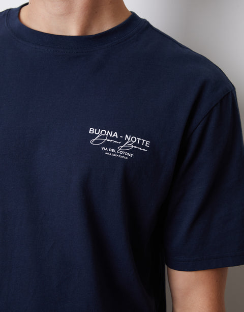 Navy Peached Cotton Graphic Lounge Set (2-Piece Set)