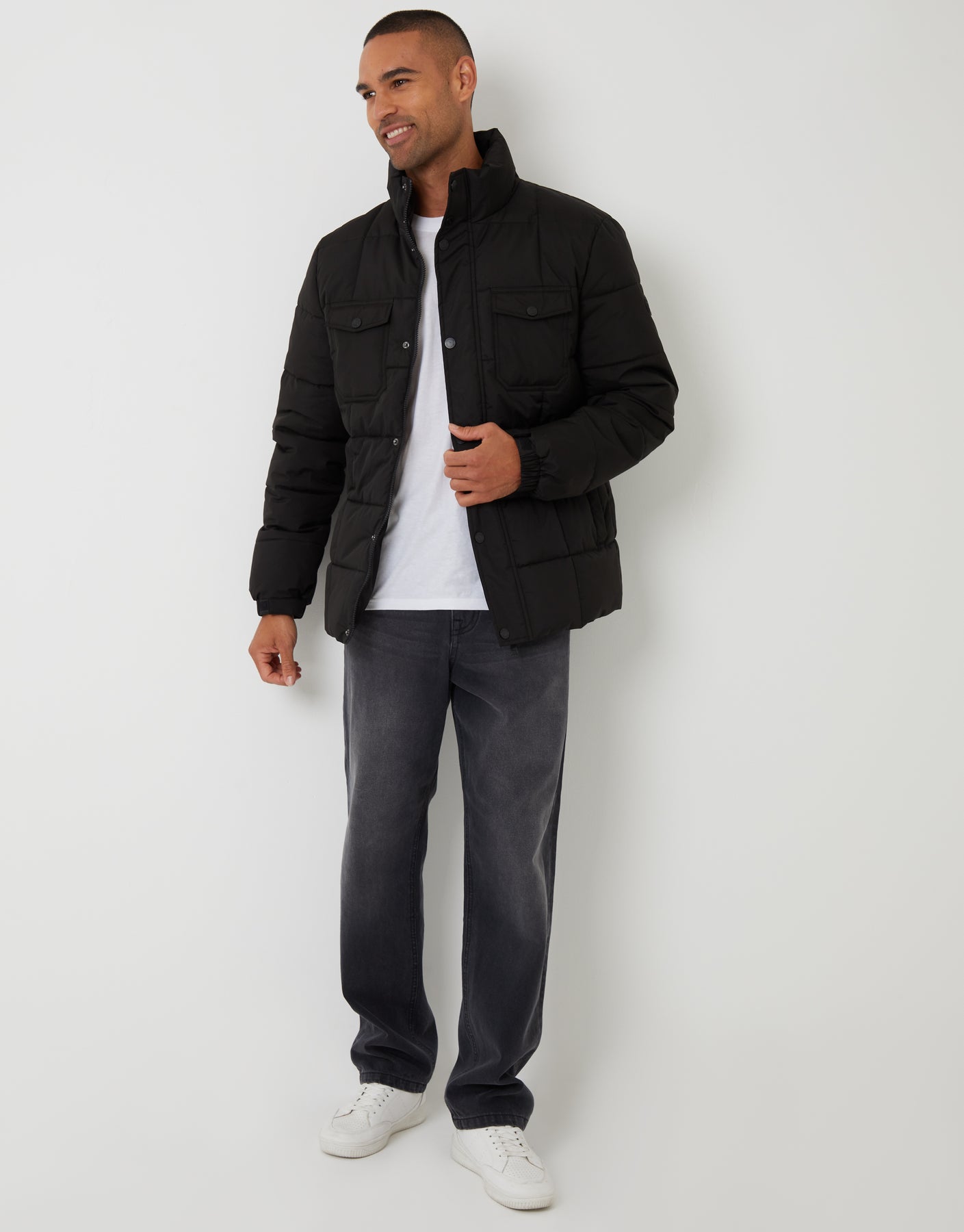 Stay warm and stylish with this Threadbare padded funnel neck jacket, a versatile outerwear essential for colder days.