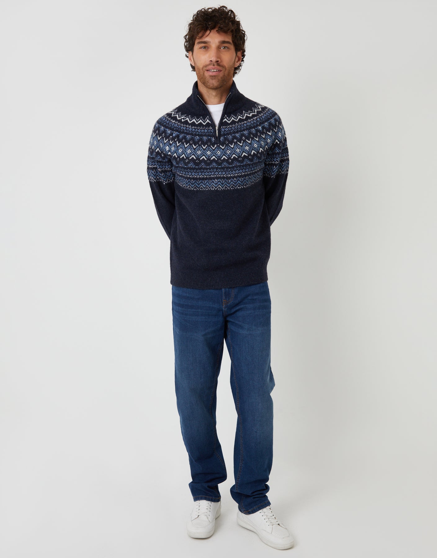 Navy Fairisle Quarter Zip Knitted Jumper