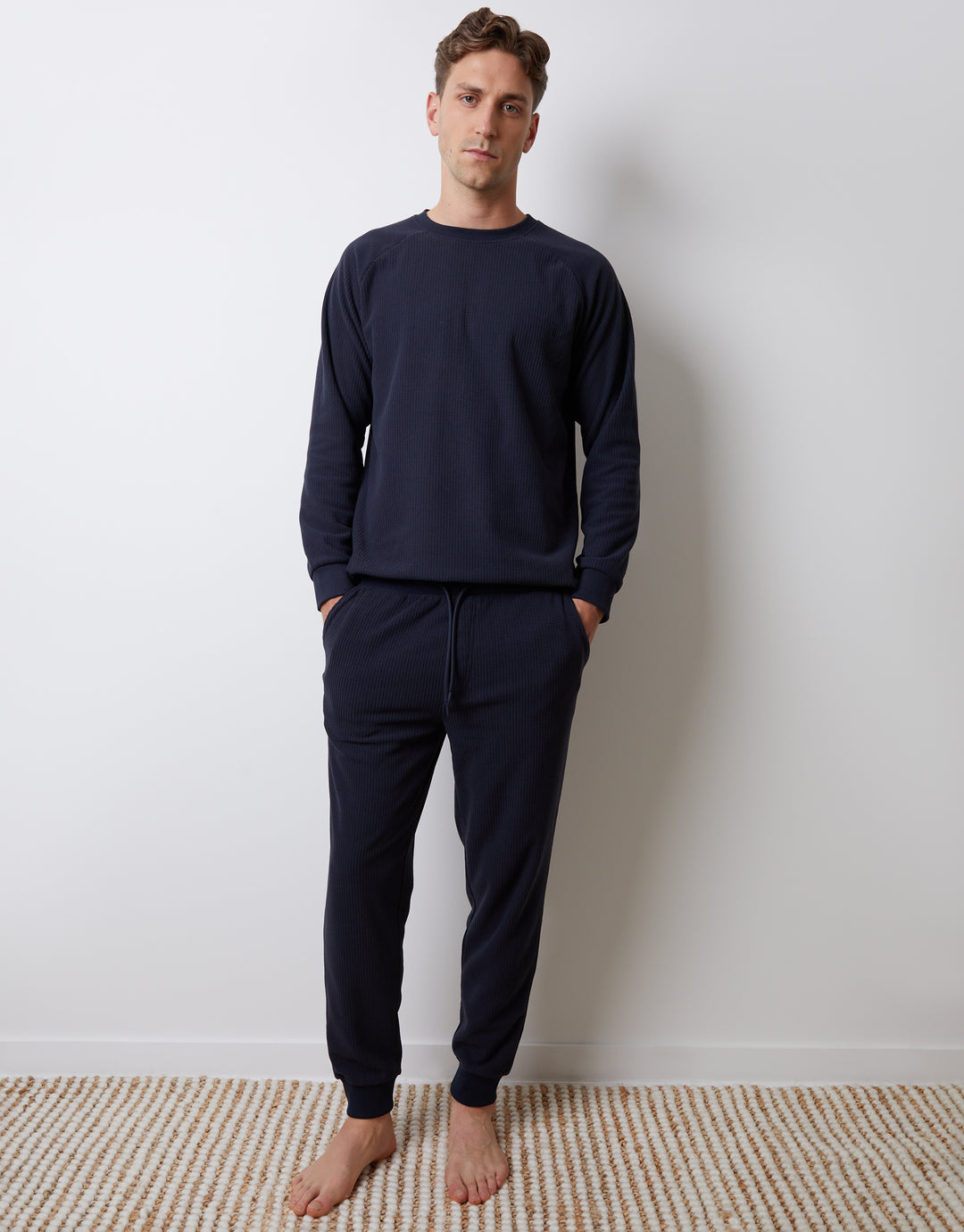 Navy Waffle Textured Fleece Loungewear Set (2-Piece Set)