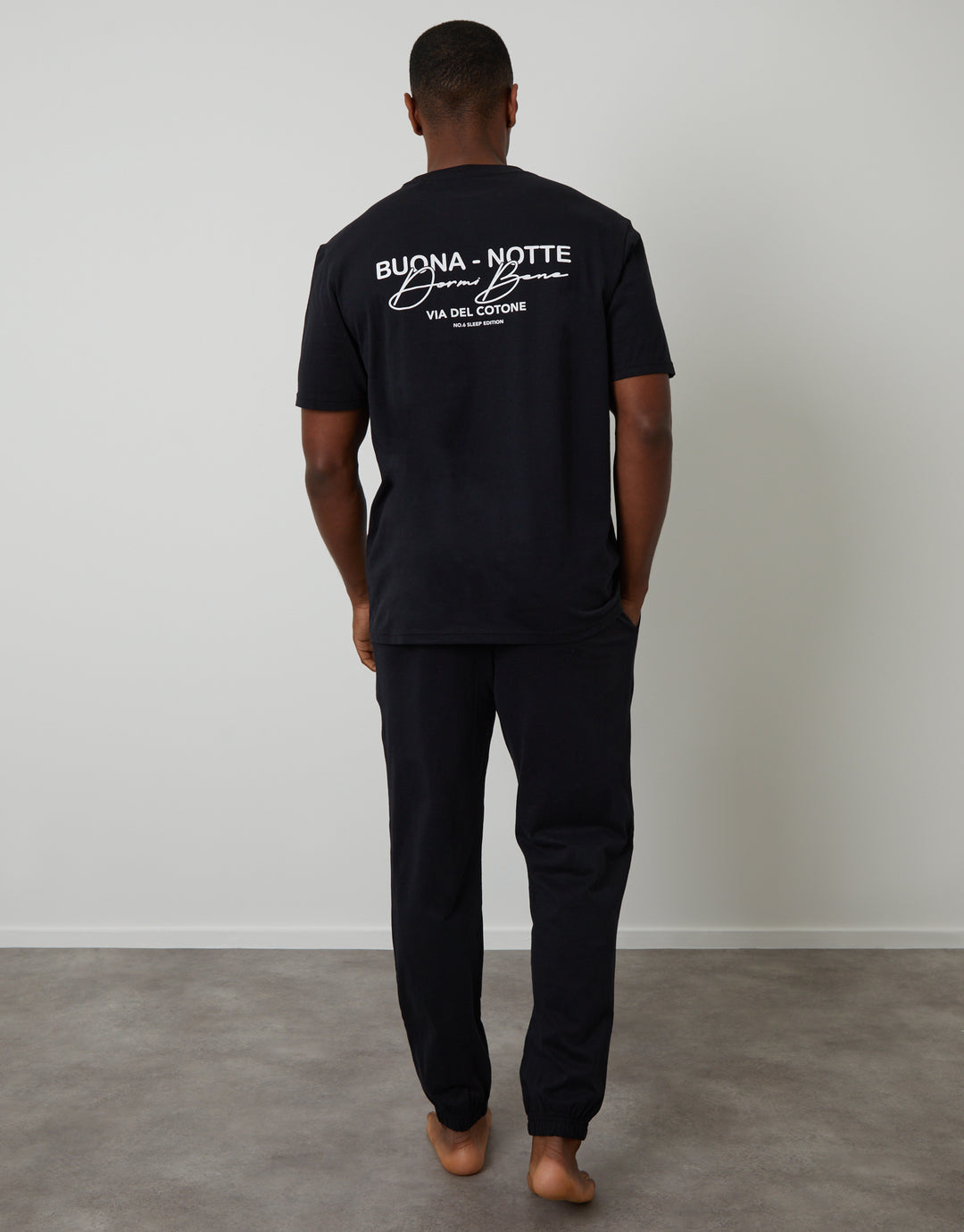 Black & Navy Short Sleeve T-Shirt & Jogger Lounge Sets (2-Piece Set) (2 Pack)