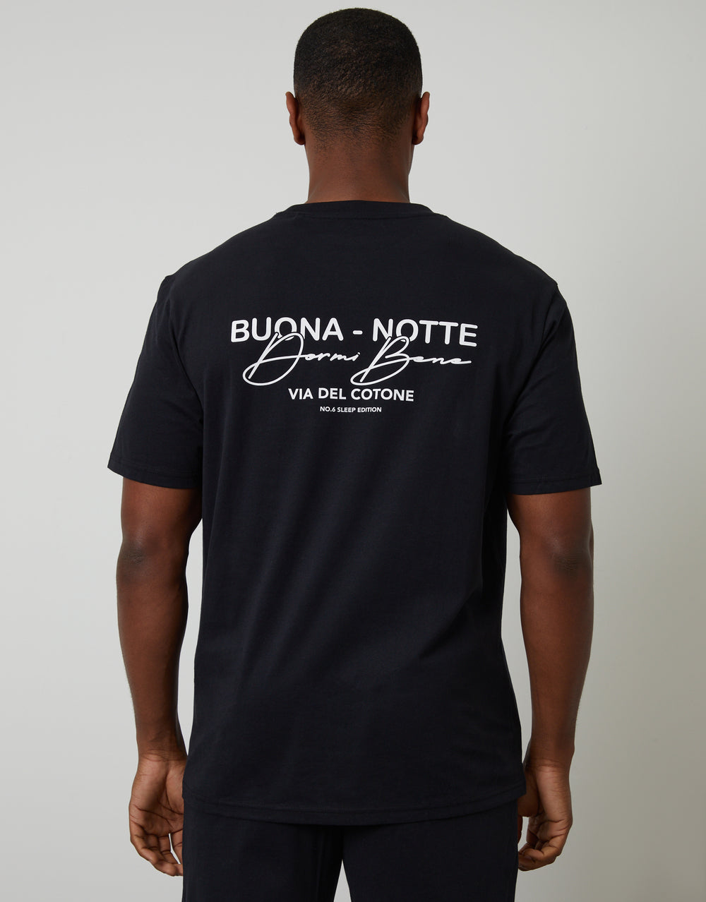 Black Peached Cotton Graphic Lounge Set (2-Piece Set)