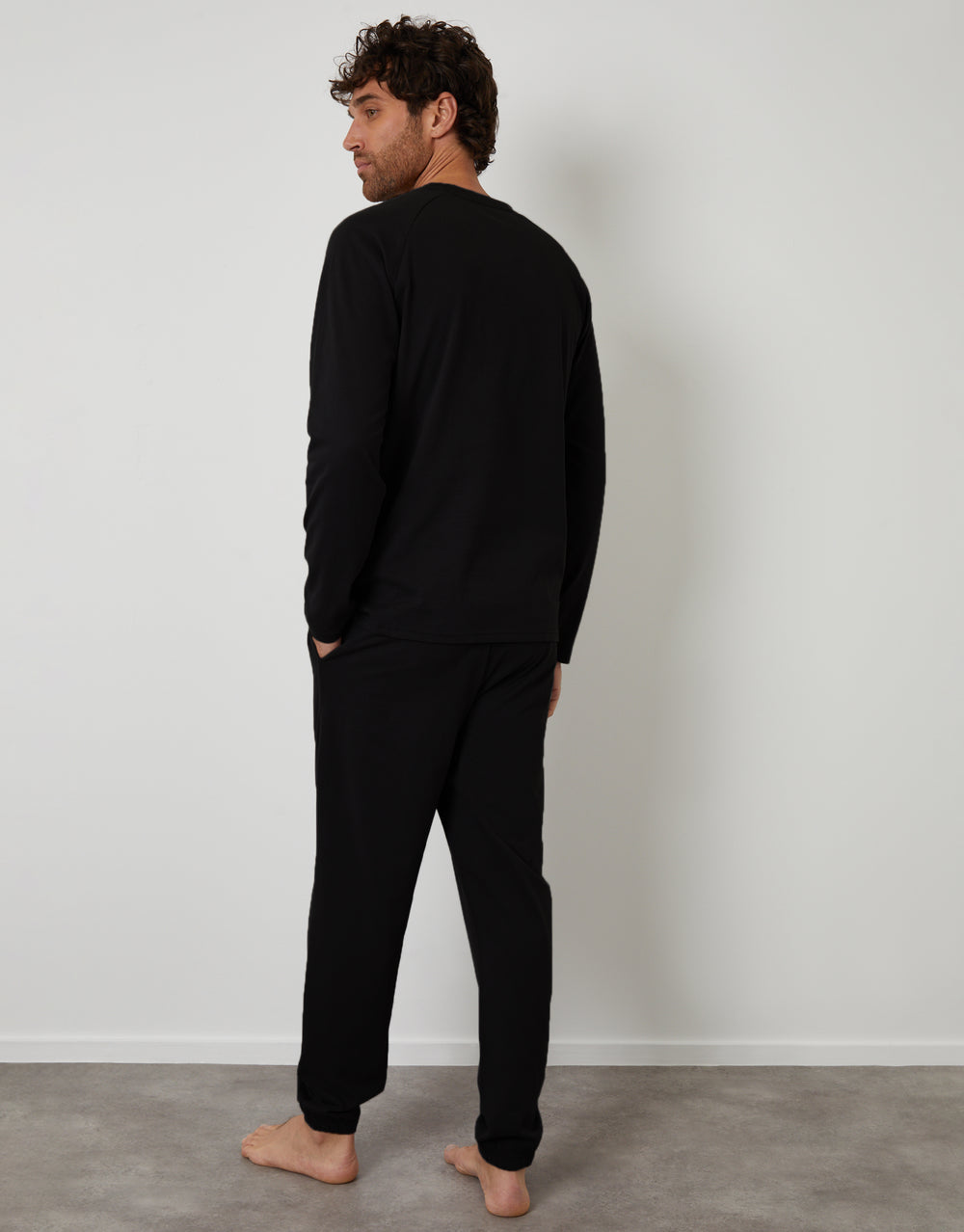 Black Peached Cotton Long Lounge Set (2-Piece Set)