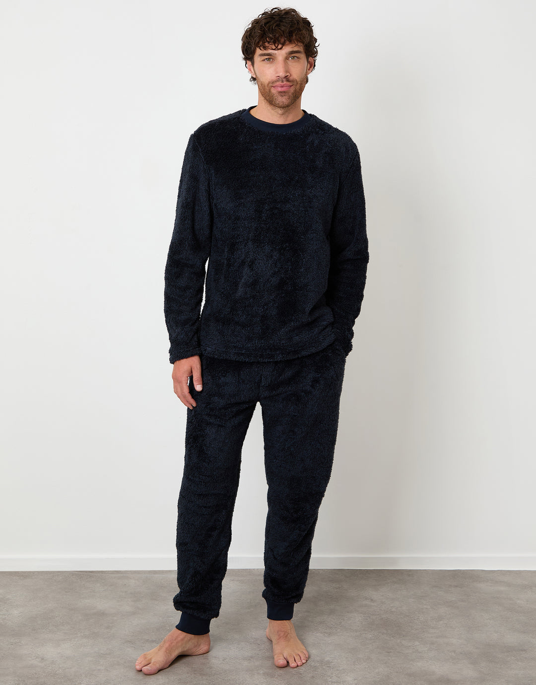 Navy Two Tone Borg Loungewear Set (2-Piece Set)
