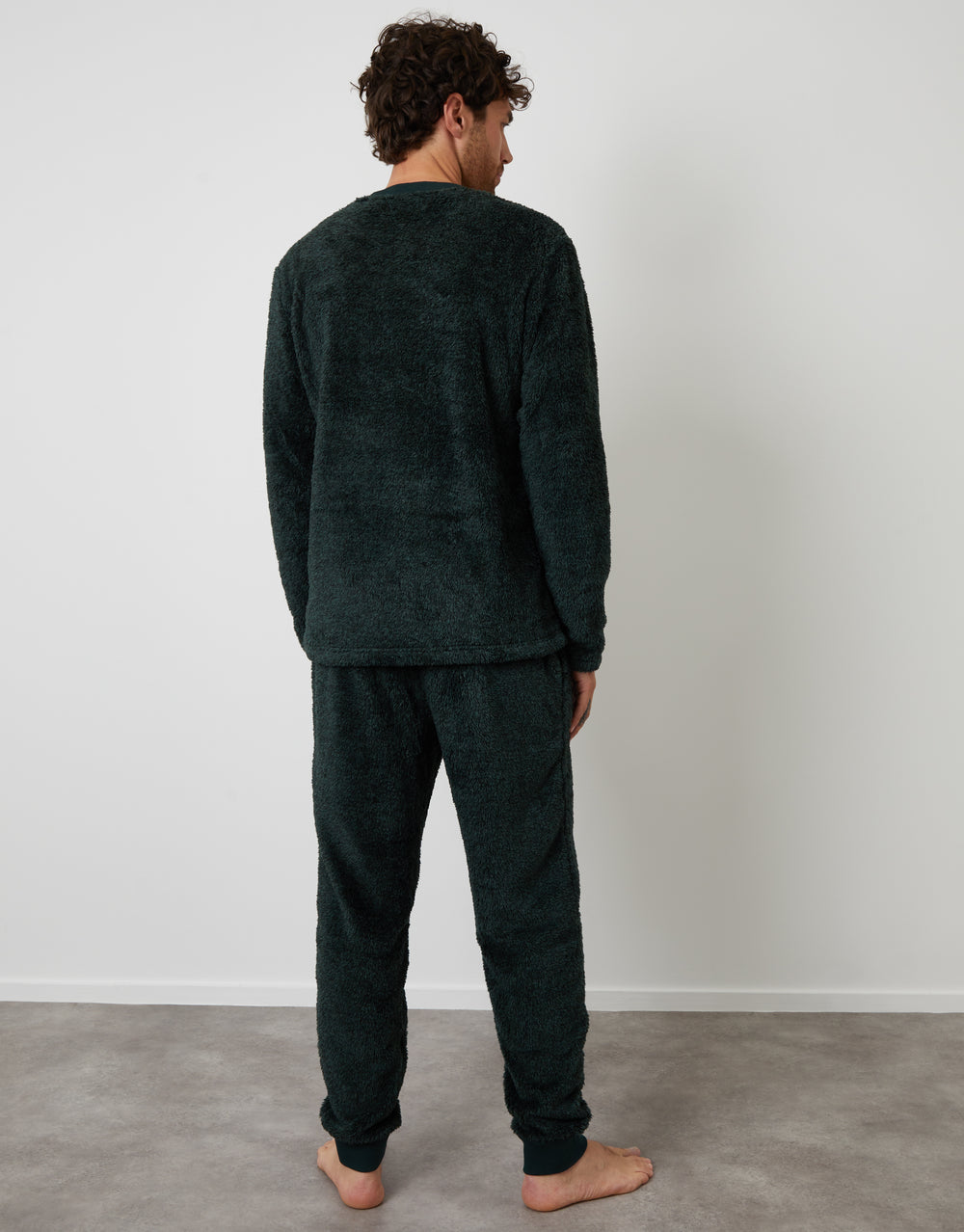 Forest Green Two Tone Borg Loungewear Set (2-Piece Set)