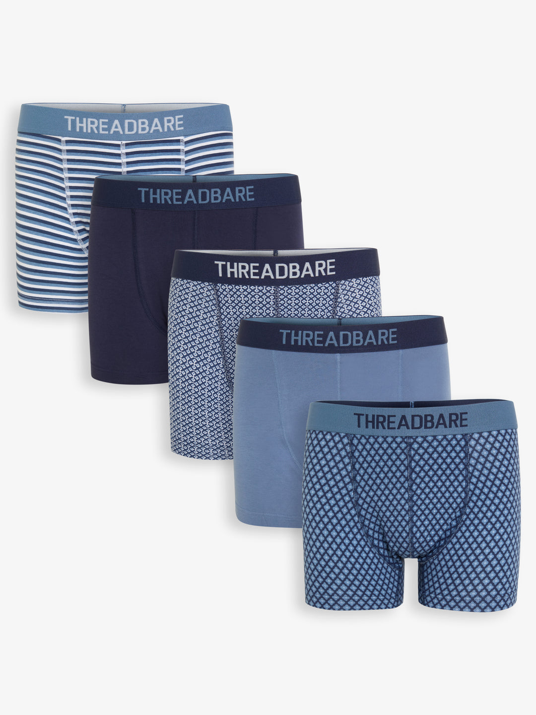 Blue Mix Assorted Printed Hipster Fit Boxer Shorts (5 Pack)