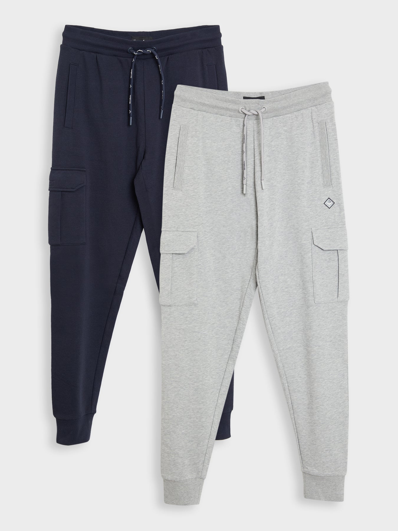 Navy & Grey Marl Cargo Style Joggers (2 Pack)