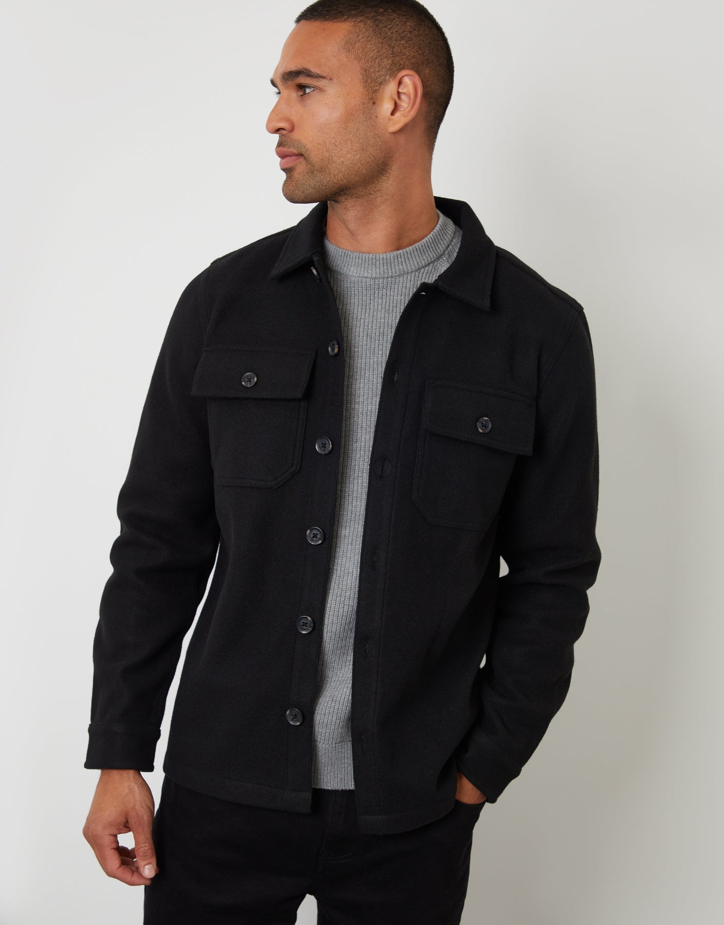 Black Faux Wool Button Up Shacket