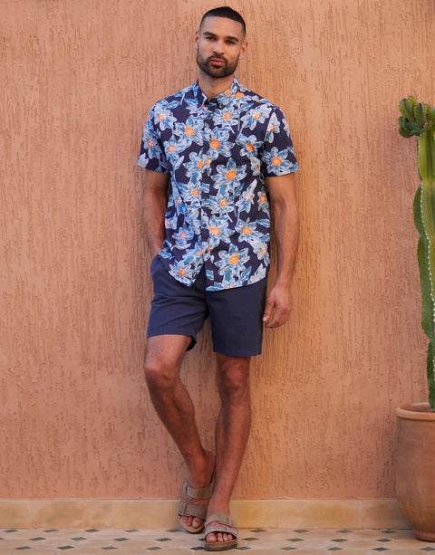 Navy Floral Print Short Sleeve Shirt