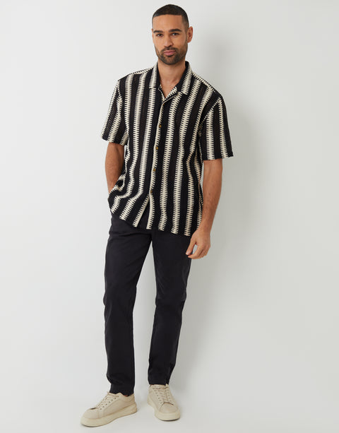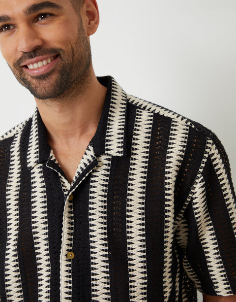 Black & Ecru Crochet Relaxed Fit Short Sleeve Shirt