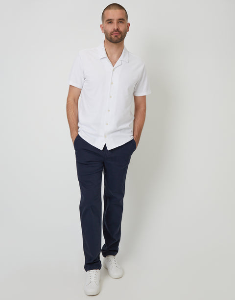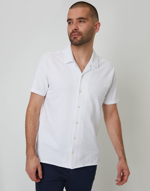 White Jersey Pique Revere Collar Short Sleeve Shirt