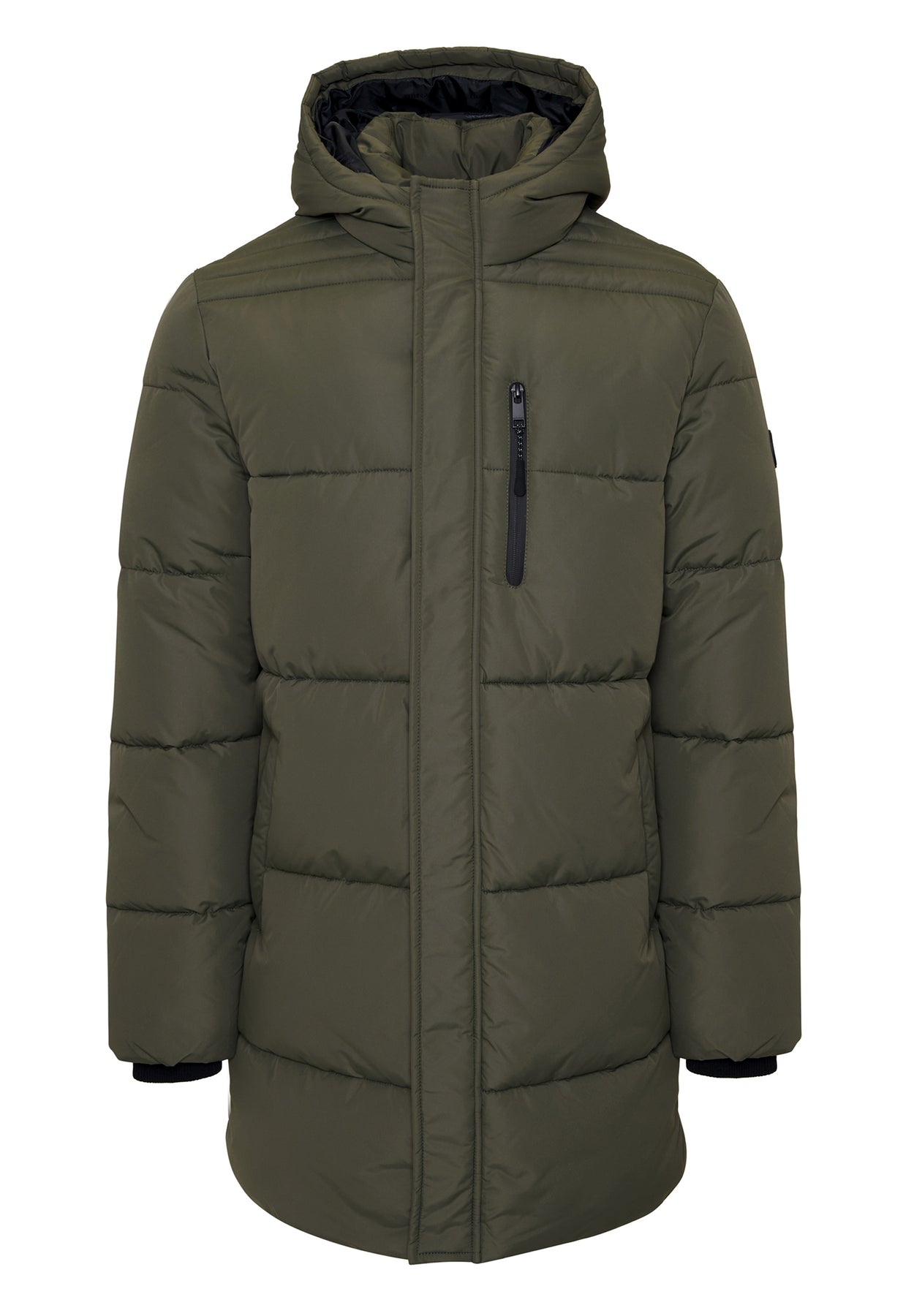 Khaki Green Showerproof Hooded Longline Puffer Jacket