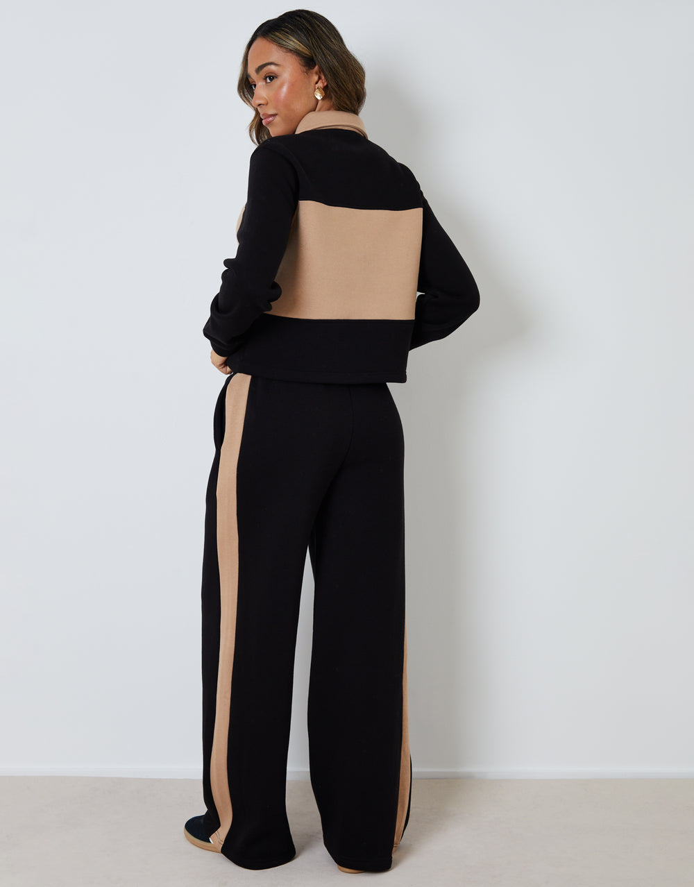 Black Boxy Long Sleeve Polo Sweatshirt & Joggers (2-Piece Set)