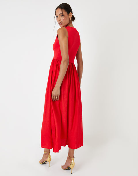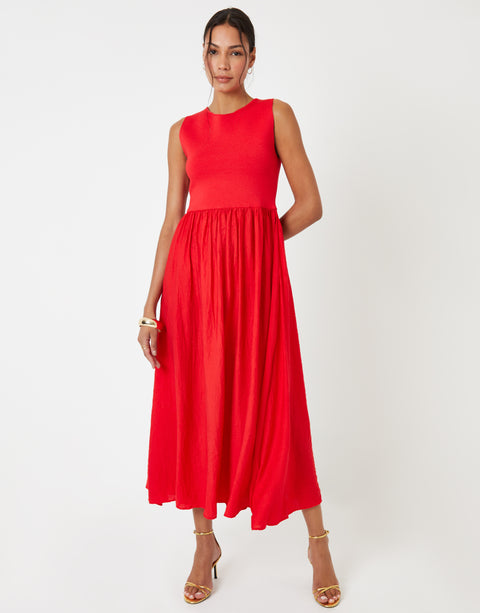 Red 2-in-1 Sleeveless Knitted Vest Maxi Dress