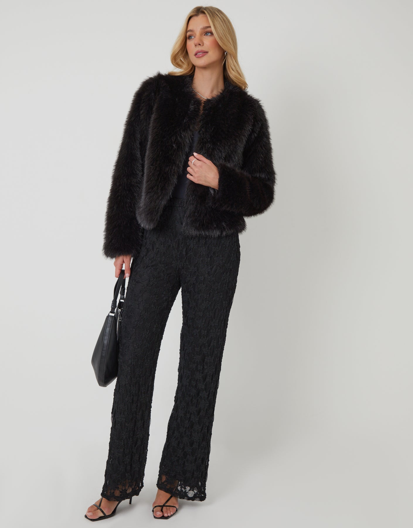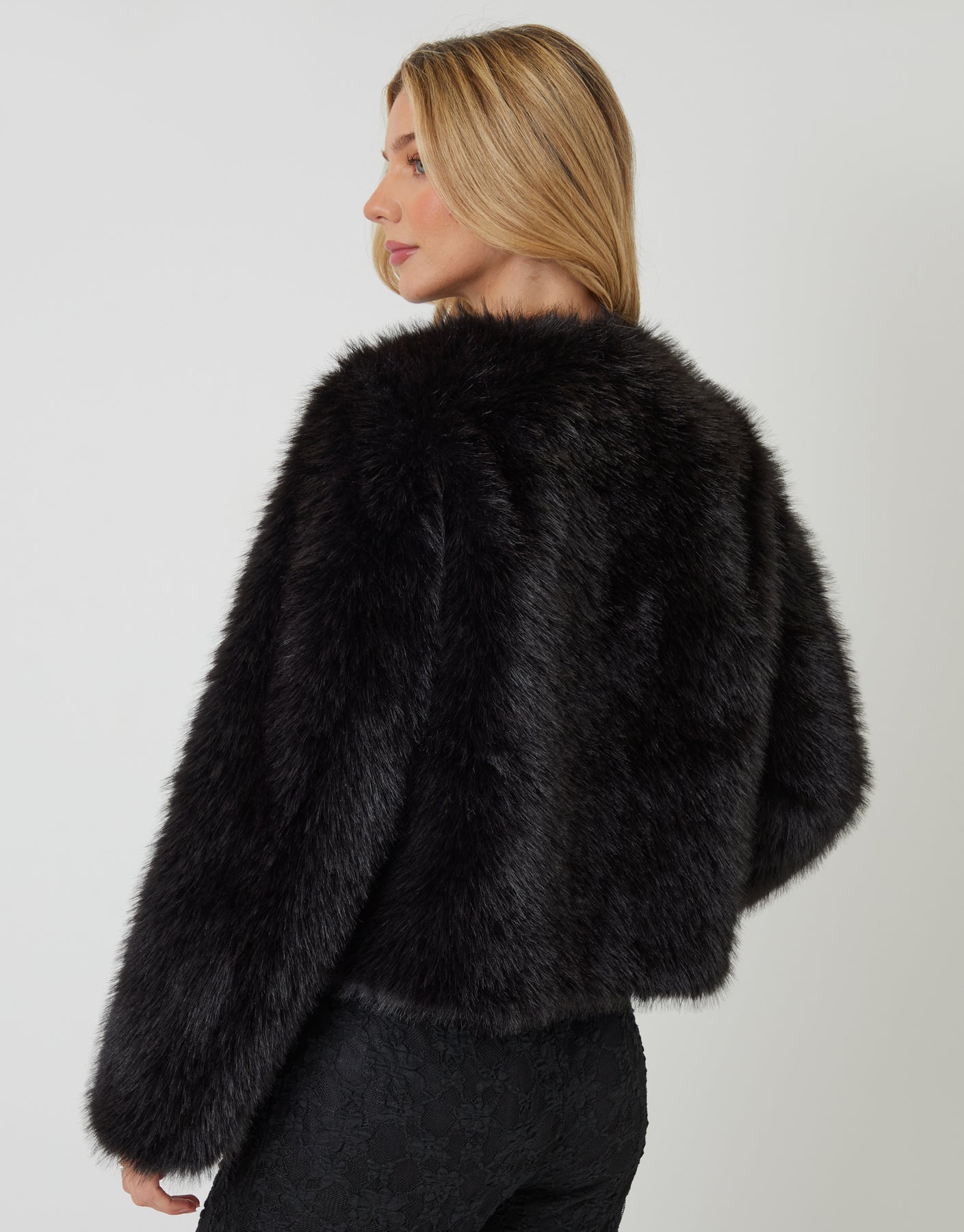 Wrap up this party season in this chic faux fur collarless coat from Threadbare.
