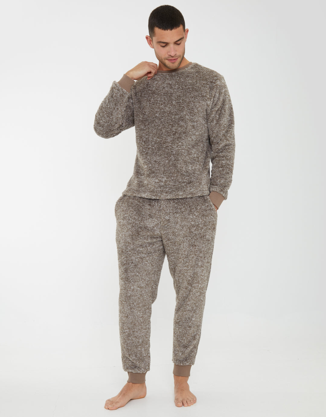 Beige Two Tone Fleece Loungewear Set (2-Piece Set)