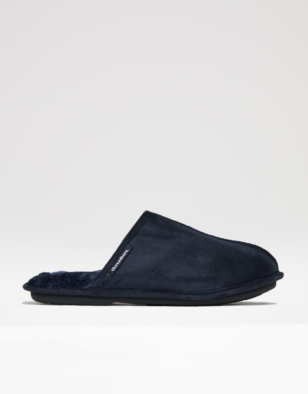 Navy Suedette Mule Slippers with Faux Fur Lining