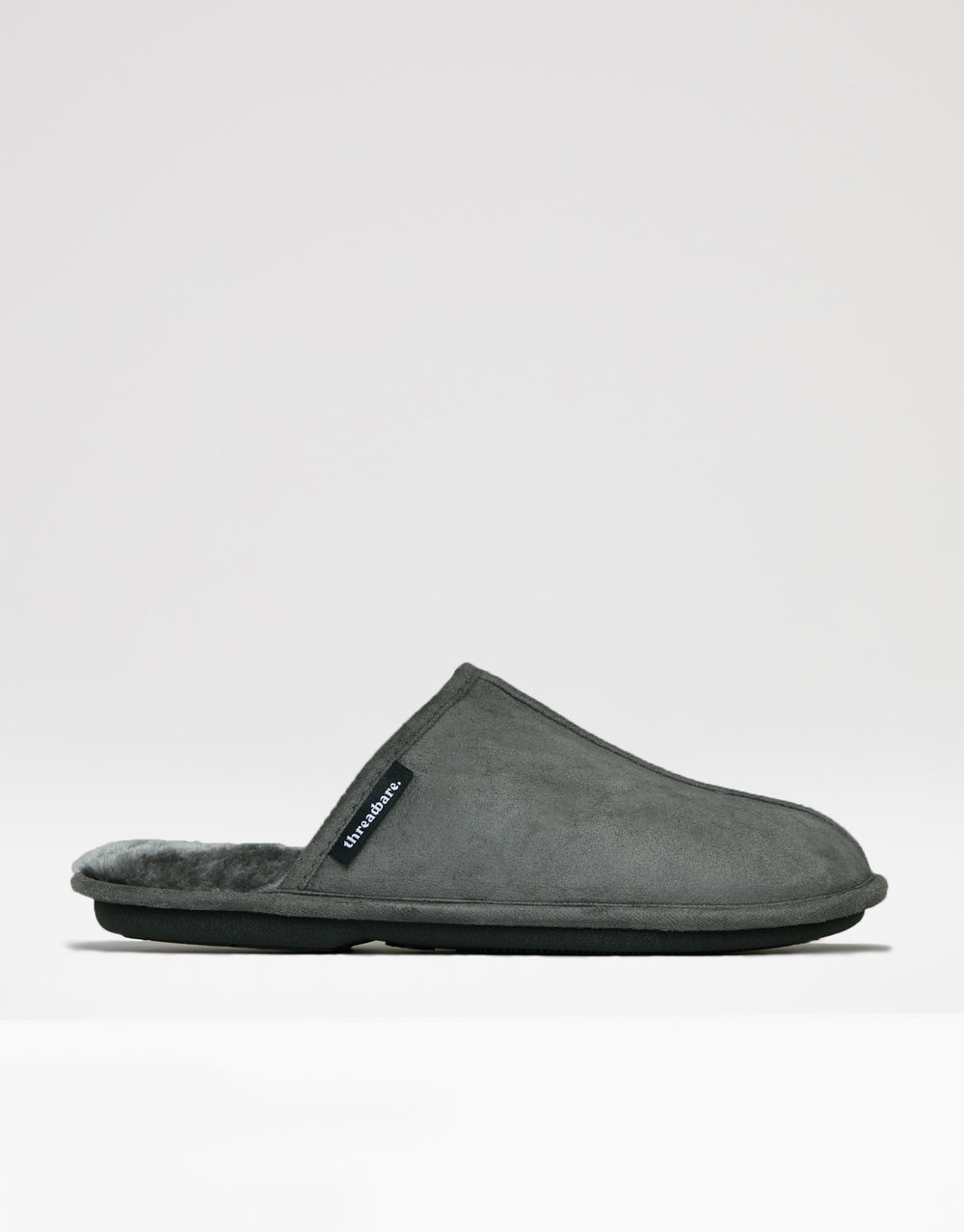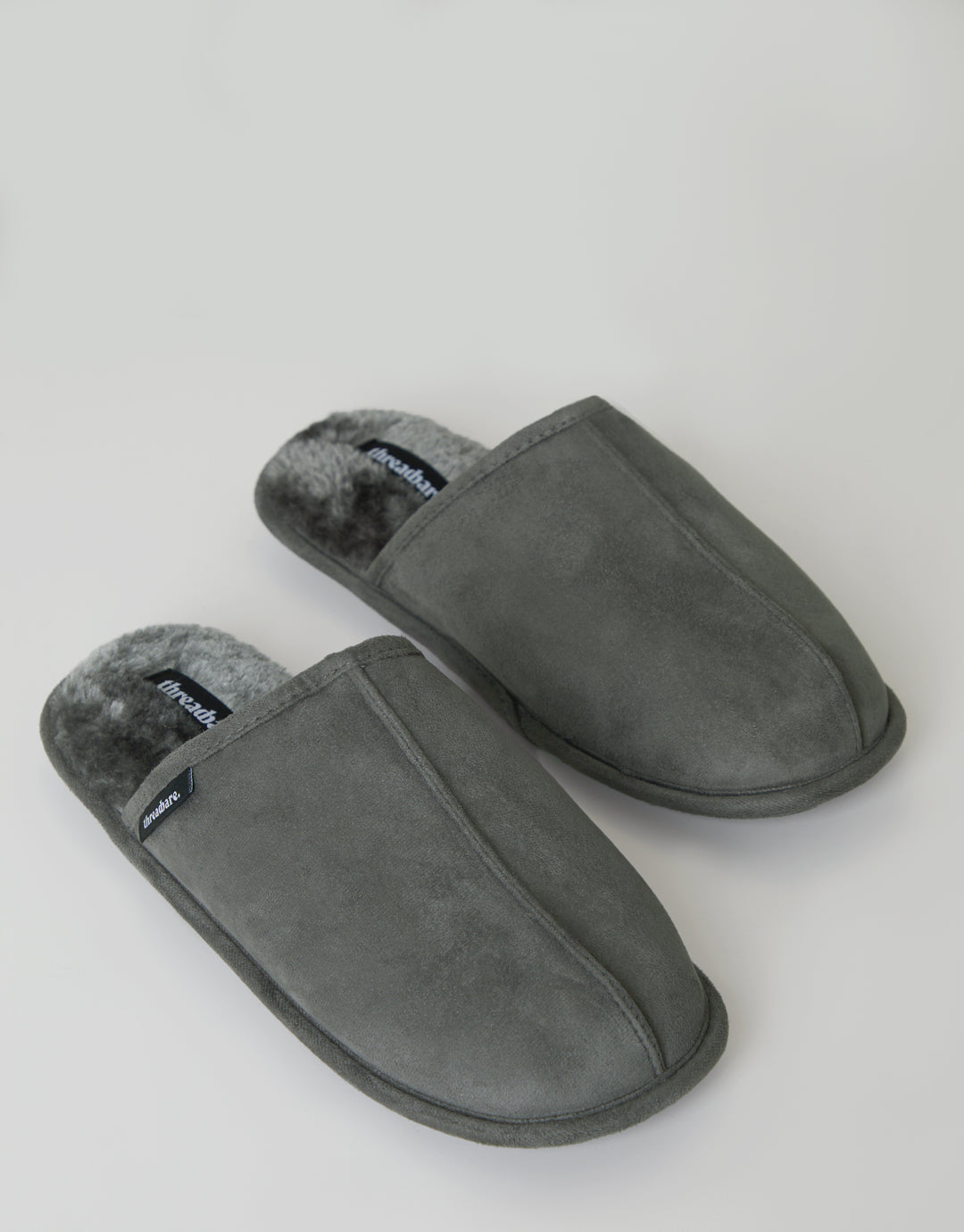 Grey Suedette Mule Slippers with Faux Fur Lining