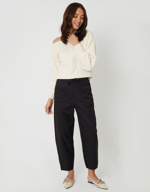 Black Curved Seam Barrel Leg Trousers
