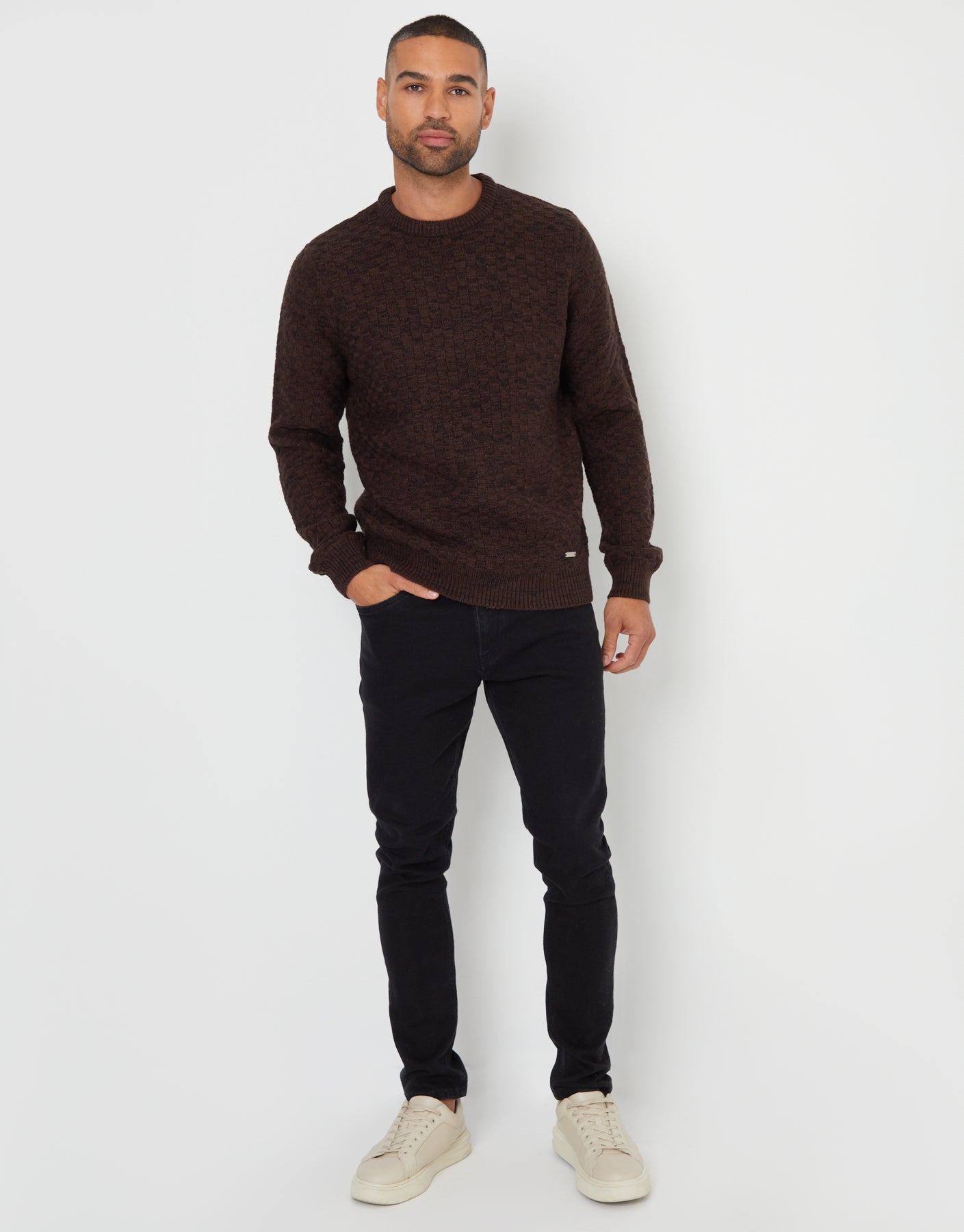 Refresh your winter essentials in this textured basket stitch Threadbare crew neck knitted jumper.
