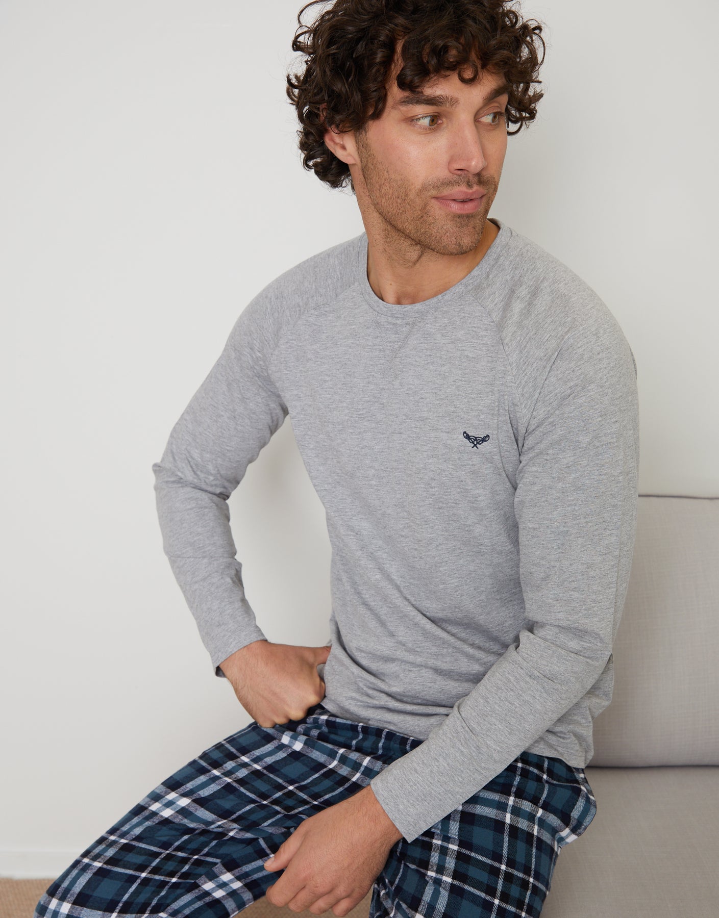Grey Check Long Pyjama Sweatshirt & Pants (2-Piece Set)