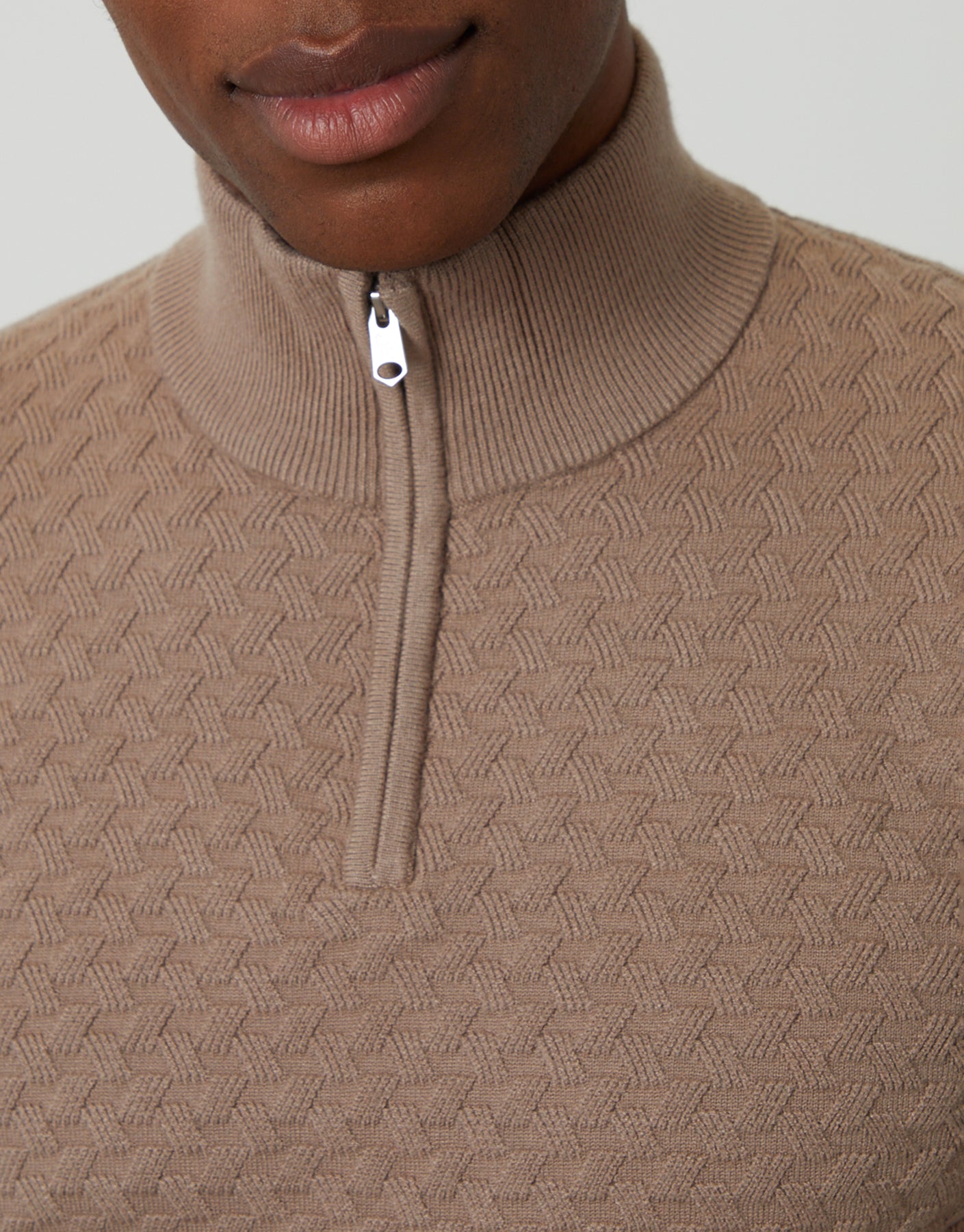 Beige Textured Cable Knit Quarter Zip Jumper