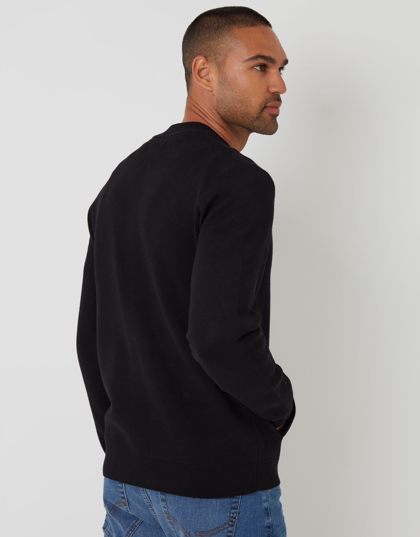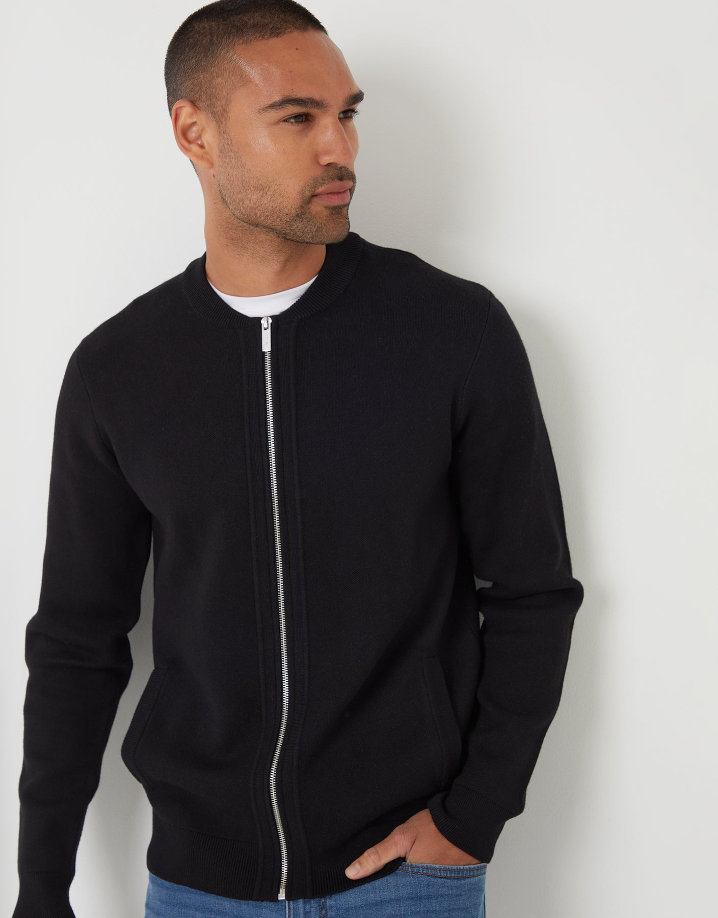 Elevate your everyday layers with this bomber-style knitted cardigan from Threadbare, a new take on classic style.