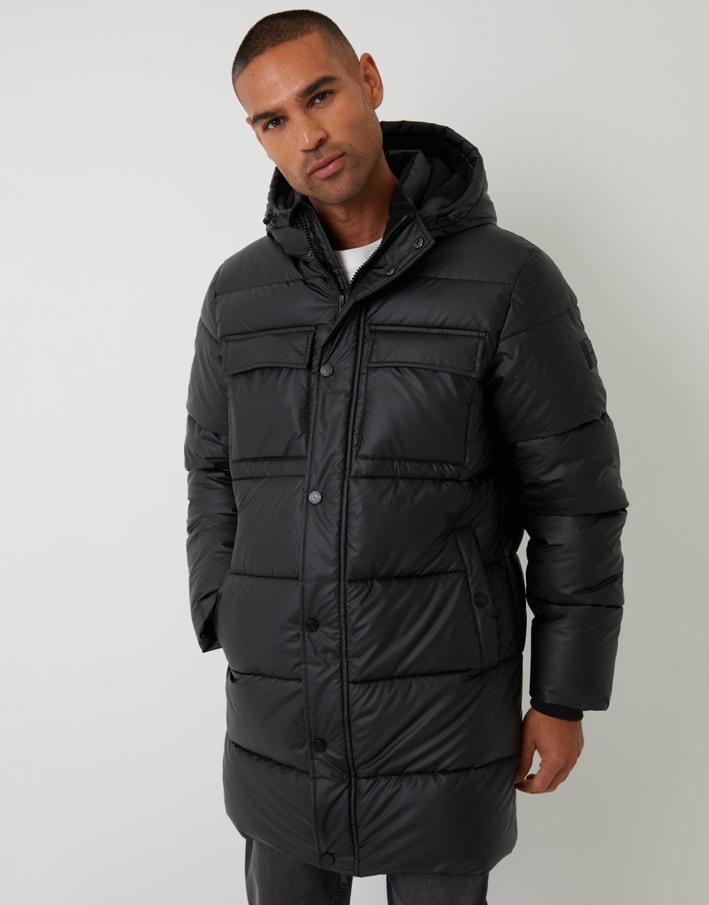 Stay out of the elements with this showerproof PU coated longline puffer coat from Threadbare.
