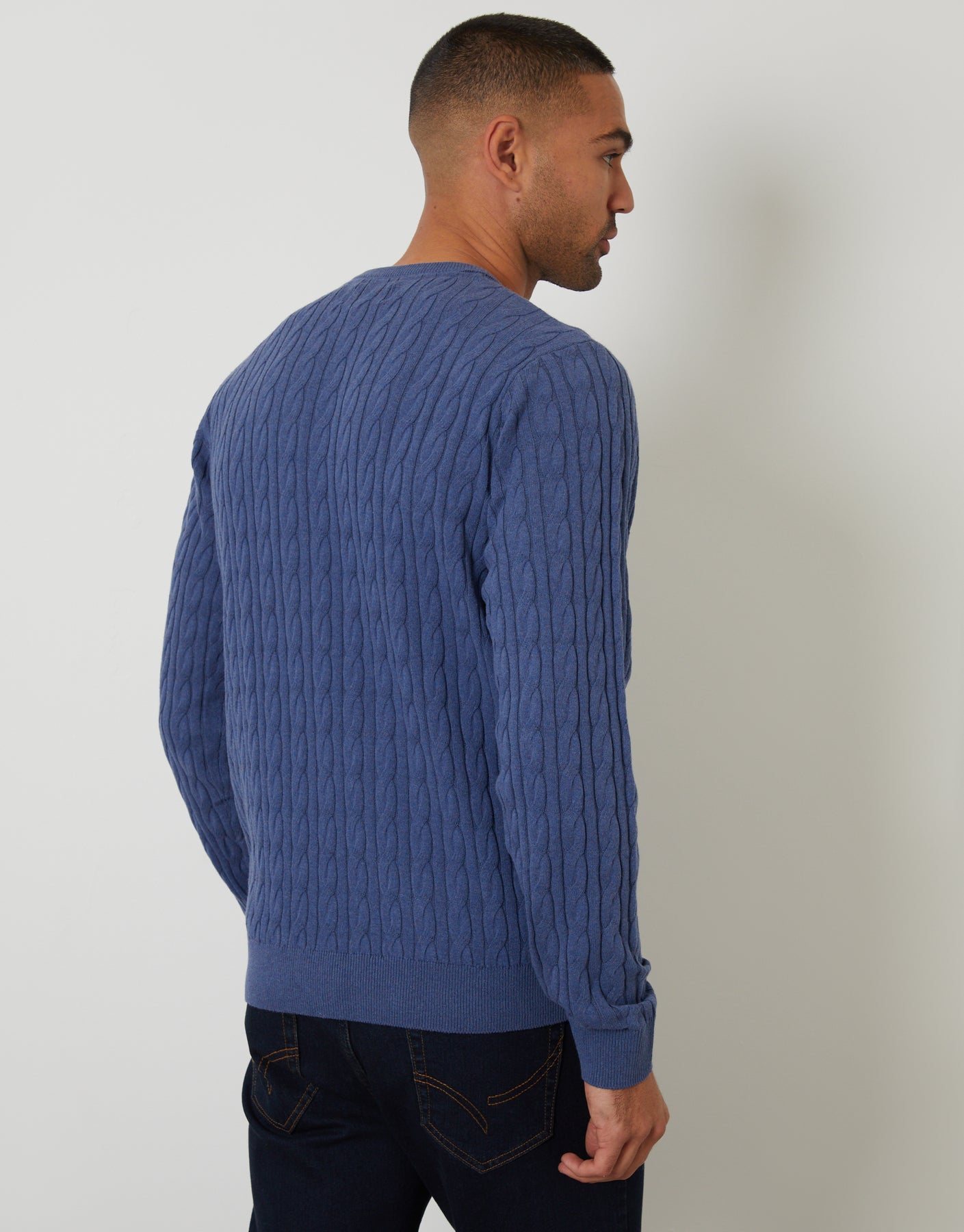 Blue Cable Knit Crew Neck Jumper