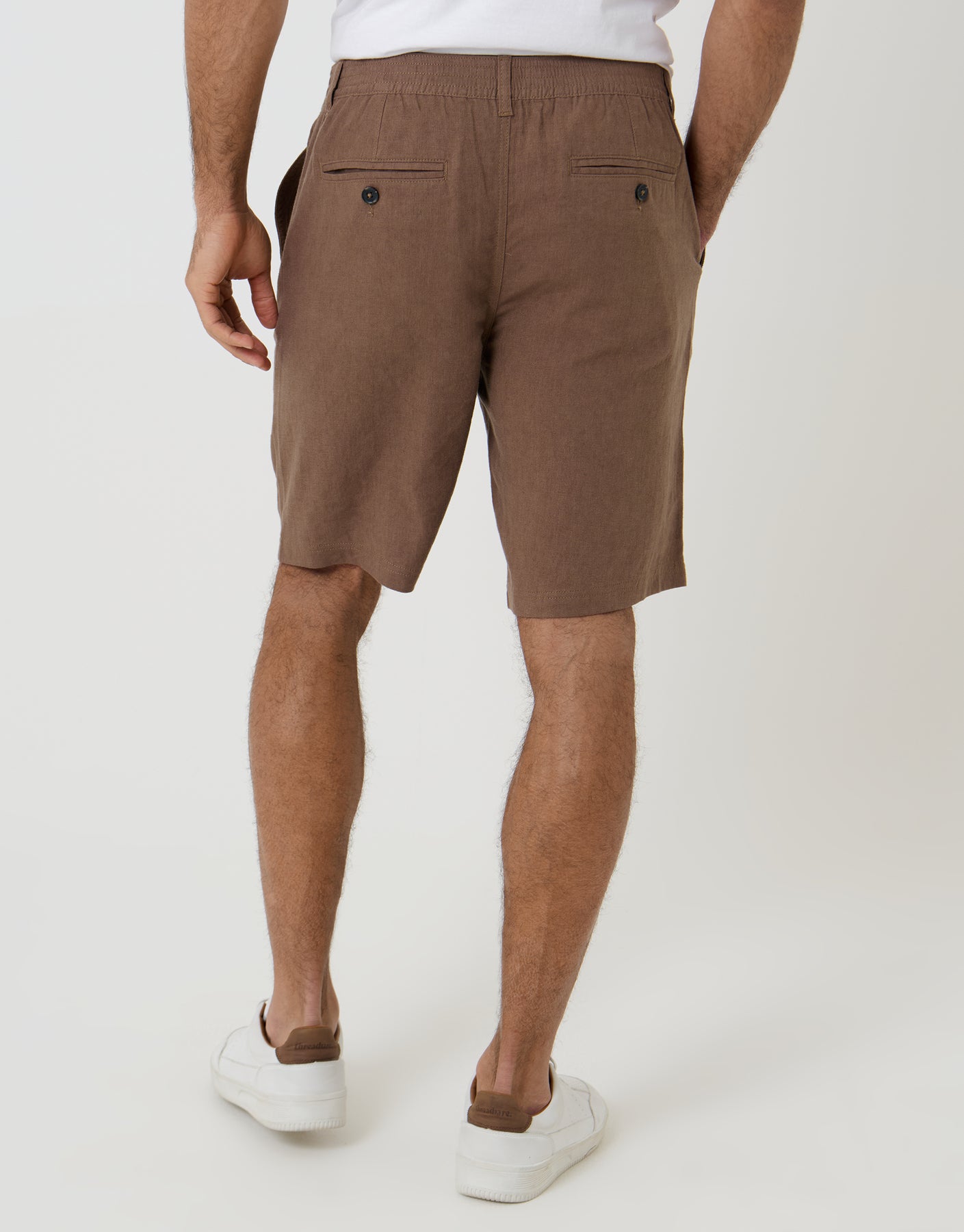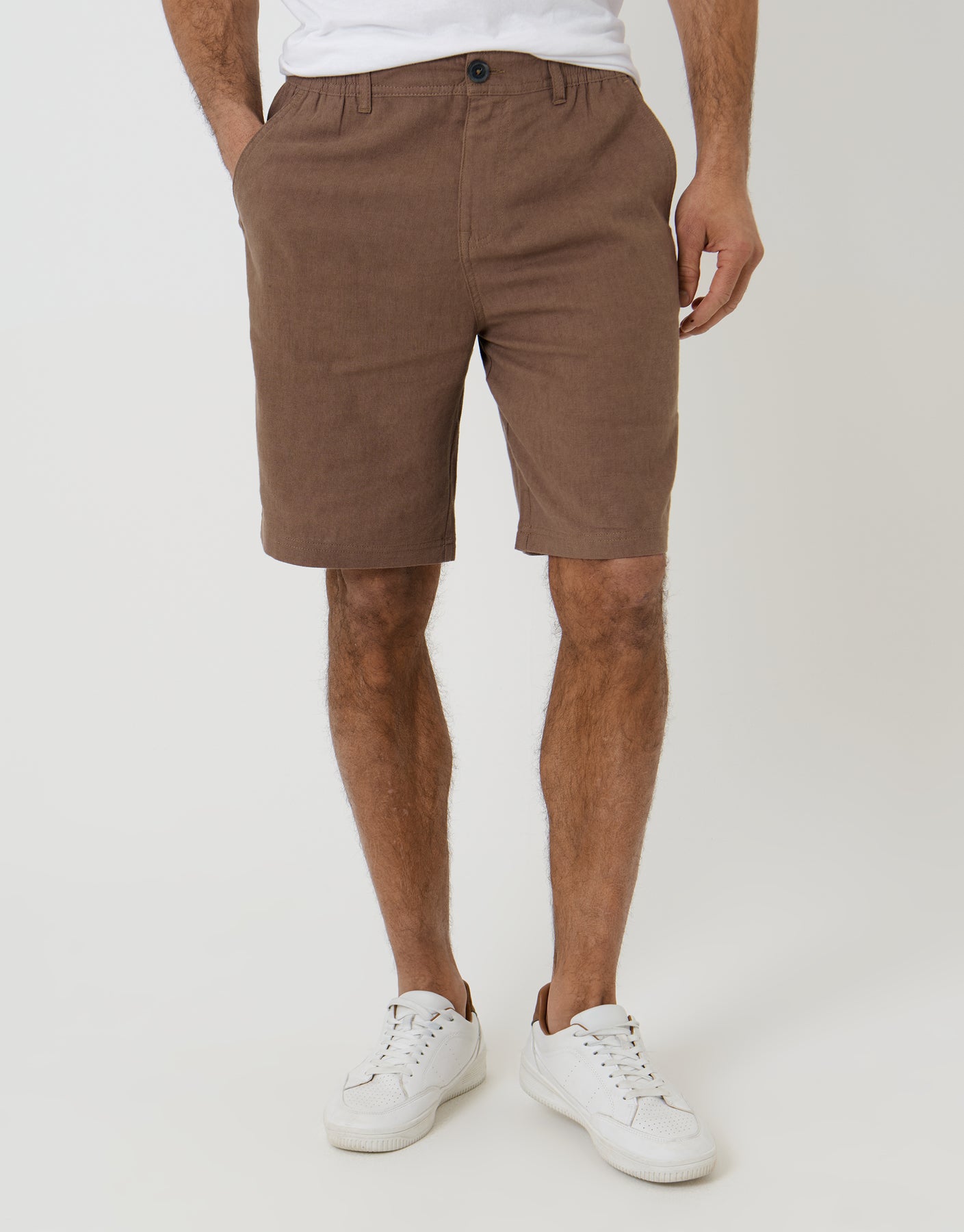 Brown Linen Blend Shorts