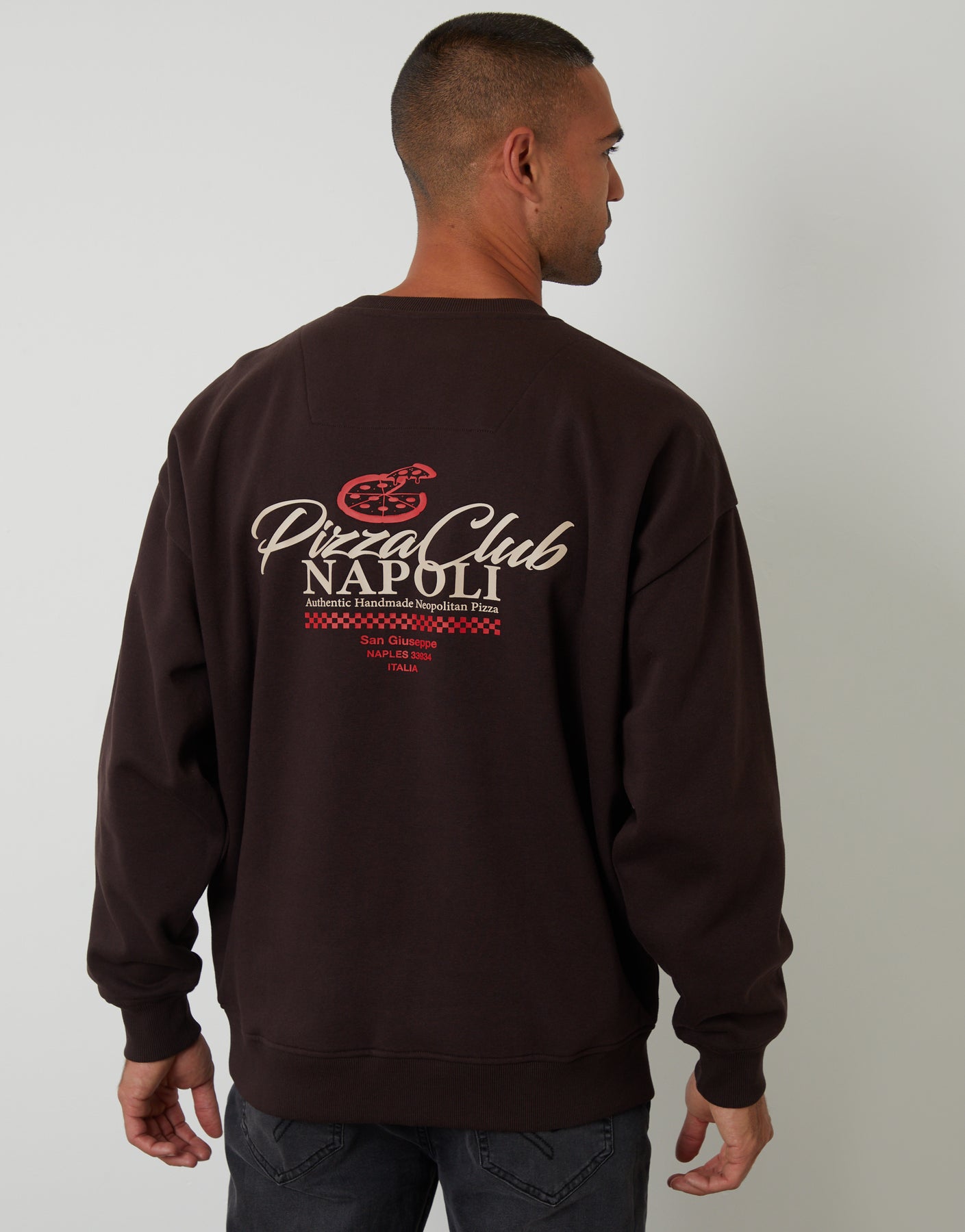 Chocolate Brown Relaxed Fit Graphic Print Crew Neck Sweatshirt