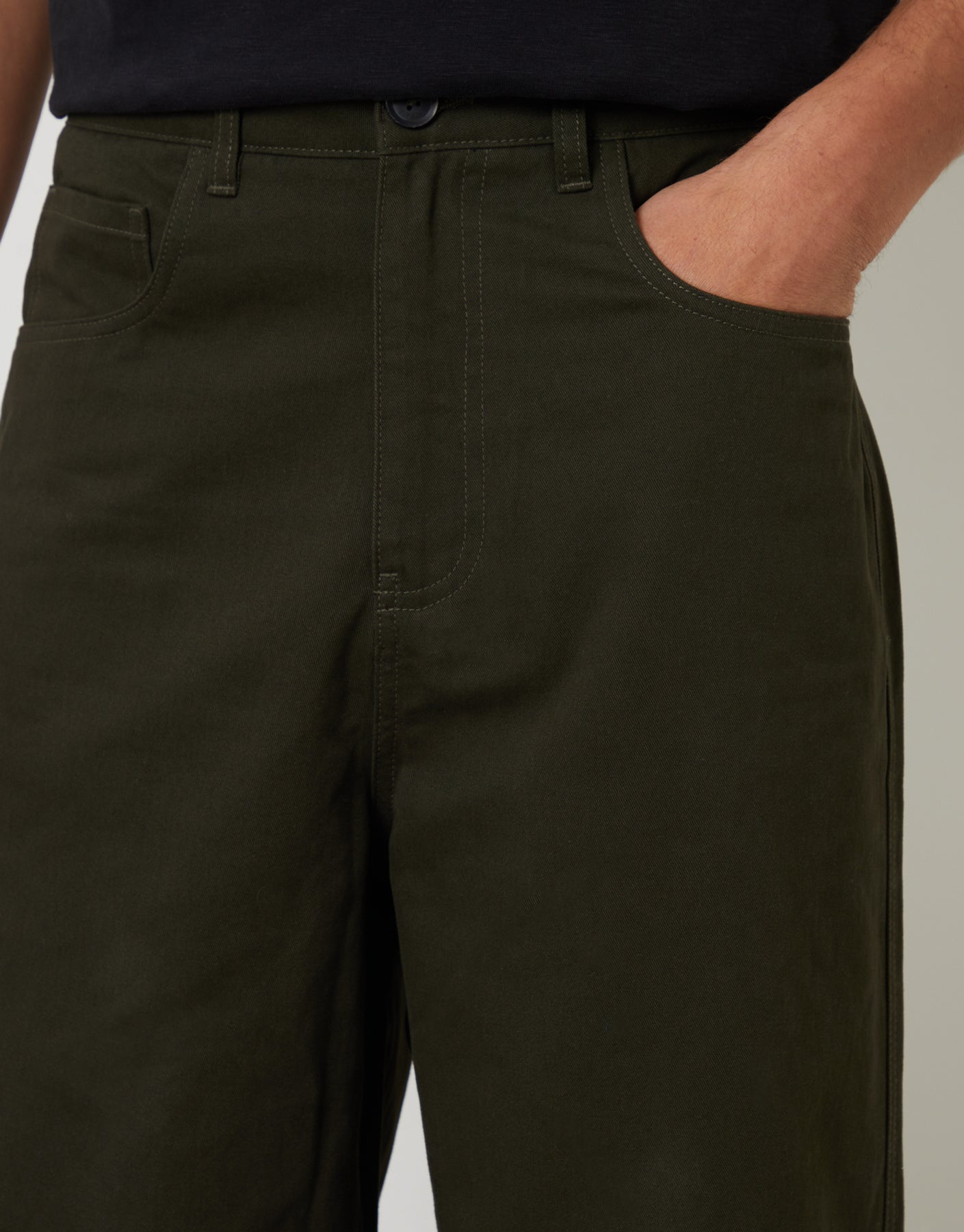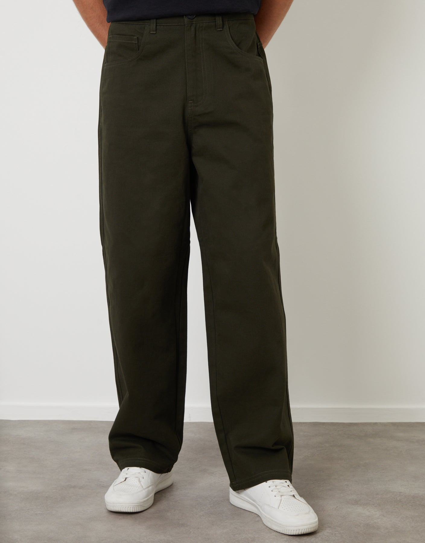 Forest Green Baggy Fit 5 Pocket Chino Trousers
