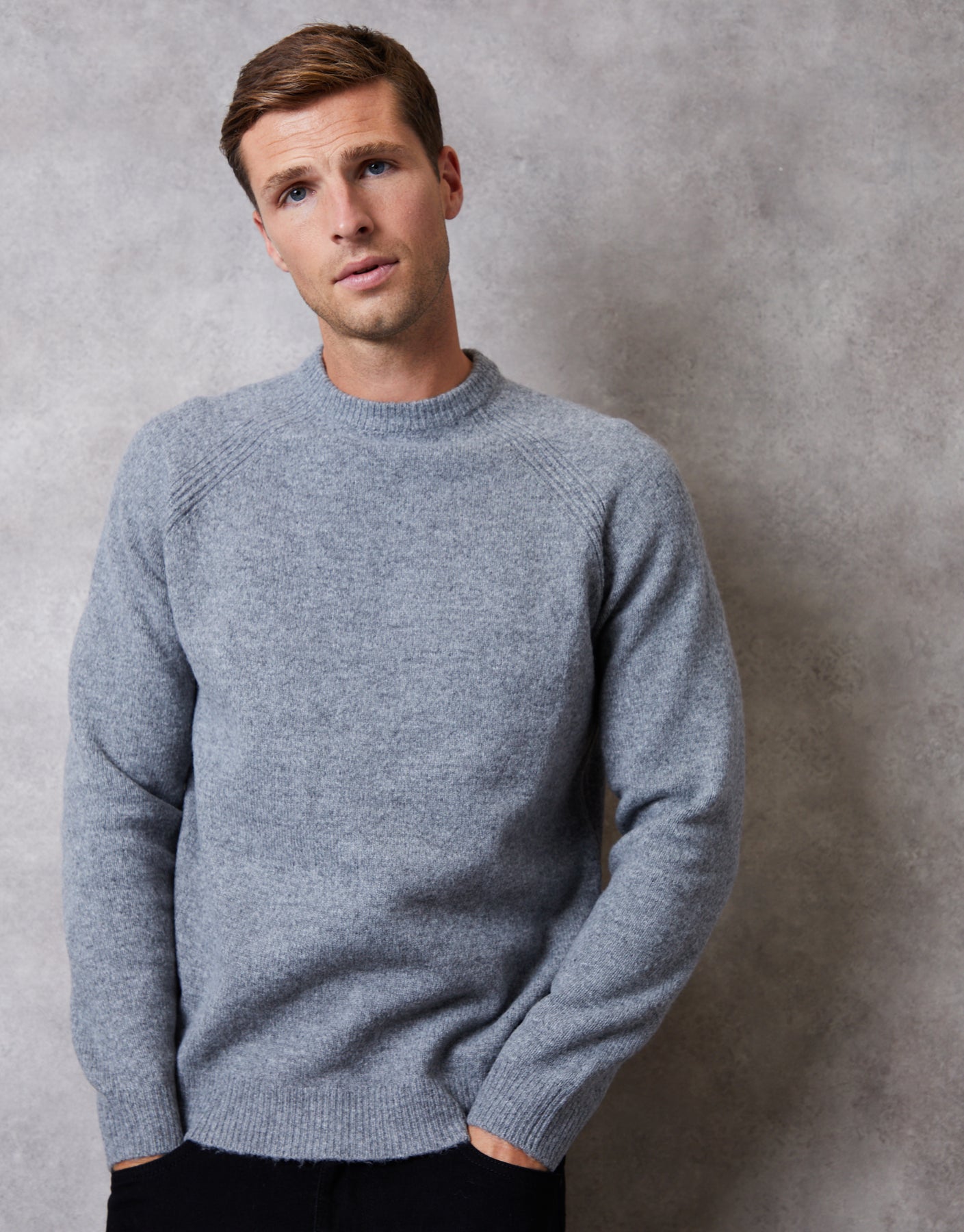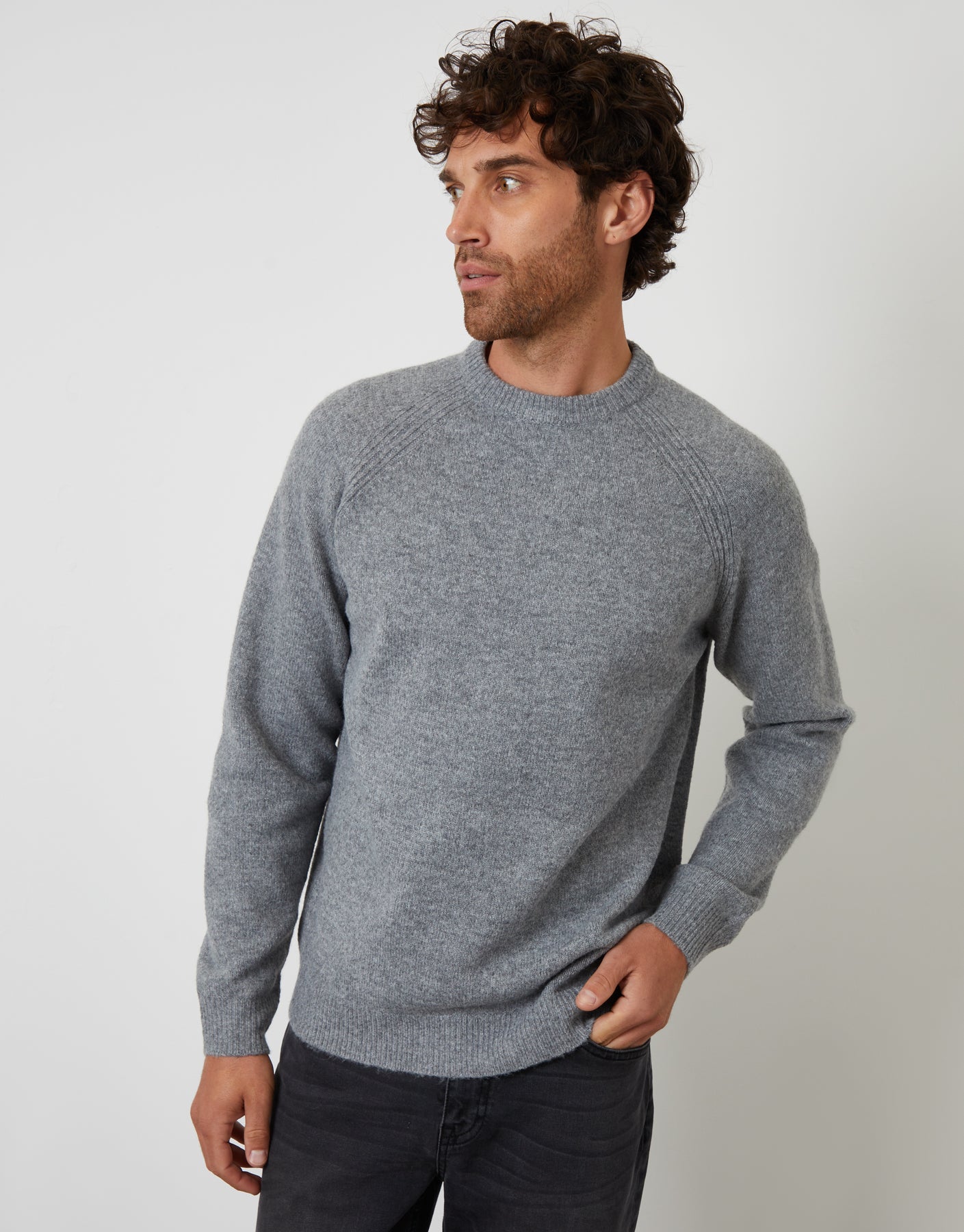 Grey Raglan Rib Knitted Crew Neck Jumper
