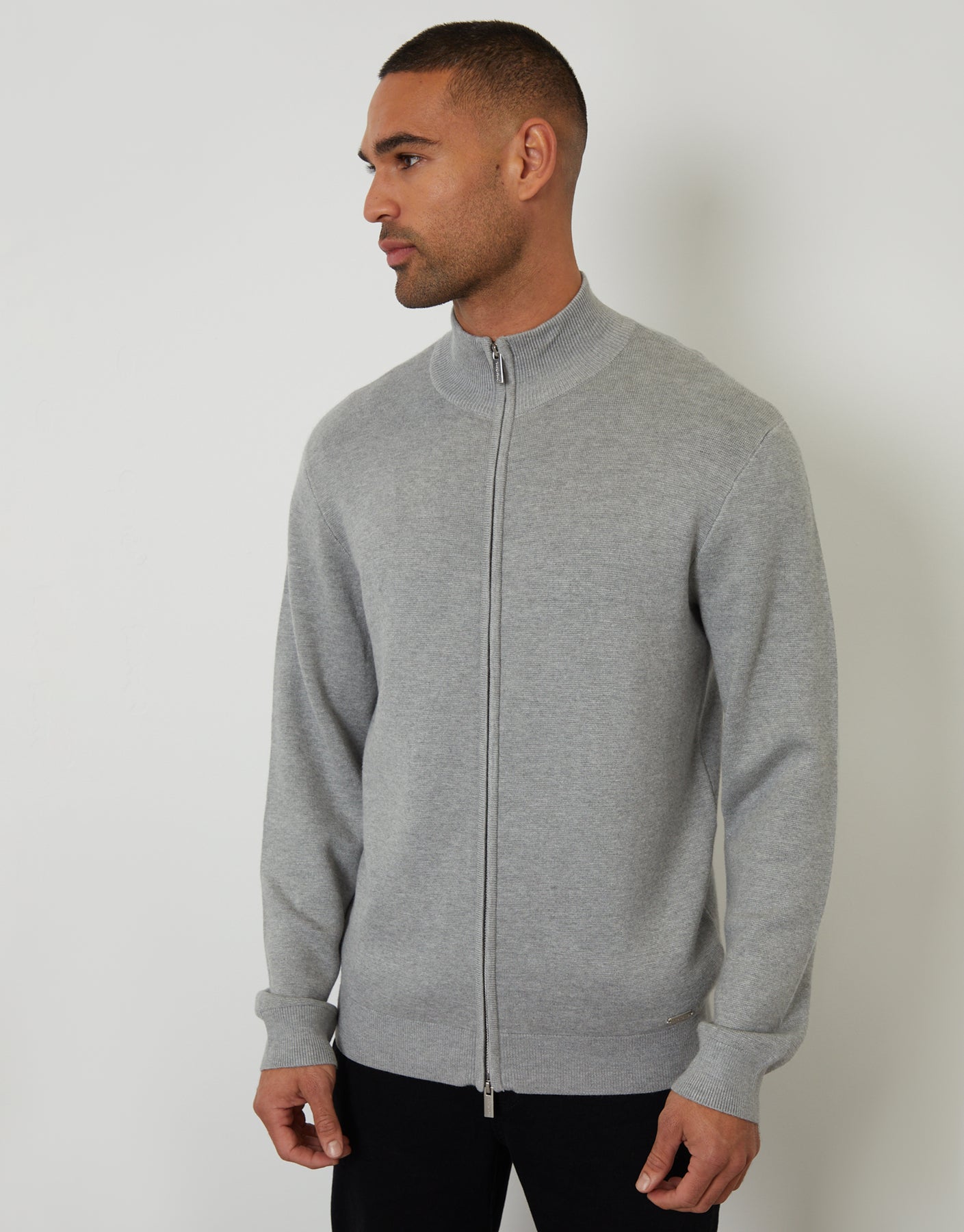 Light Grey Zip-Through Funnel Neck Knitted Cardigan