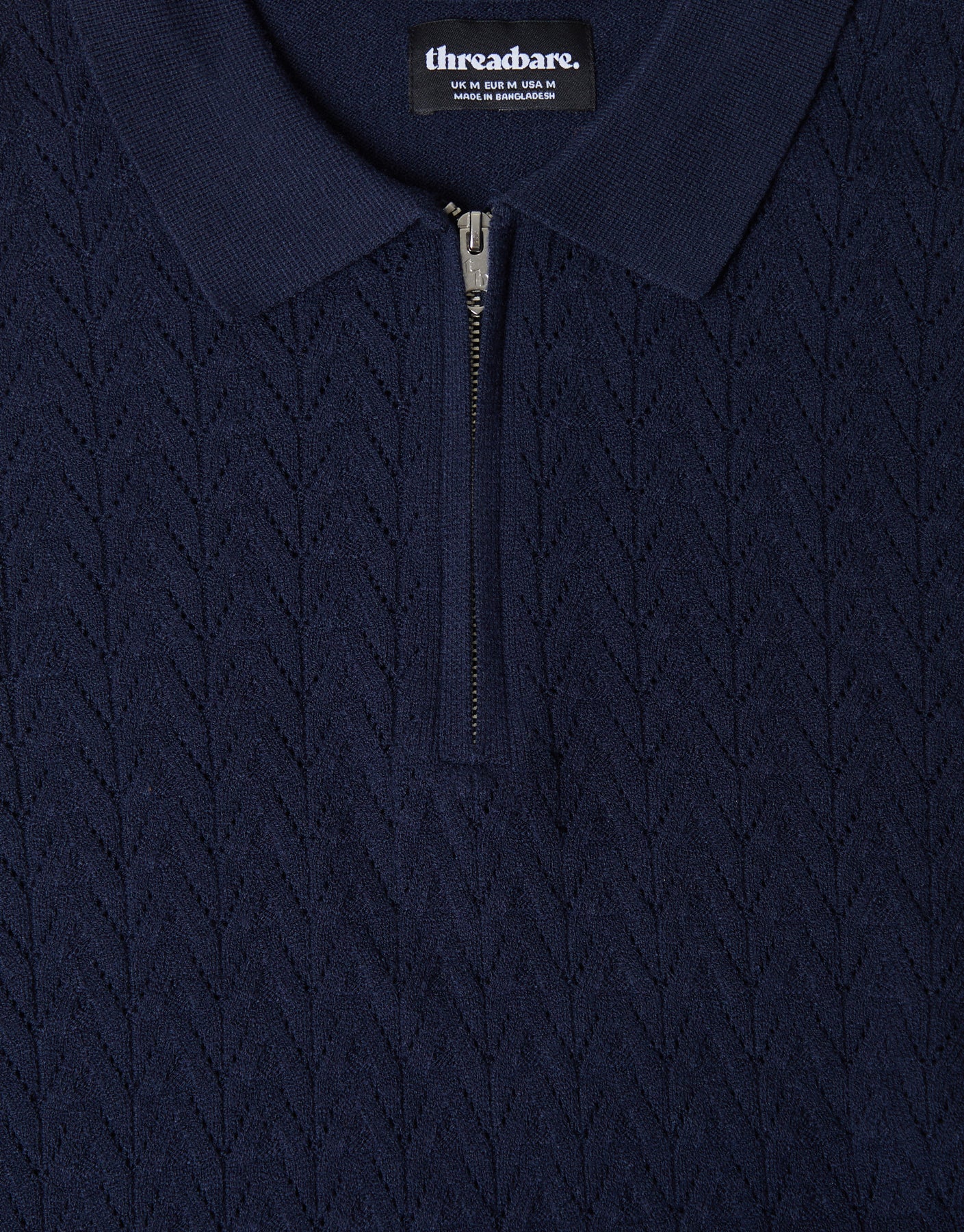 Navy Textured Knit Quarter Zip Polo Jumper