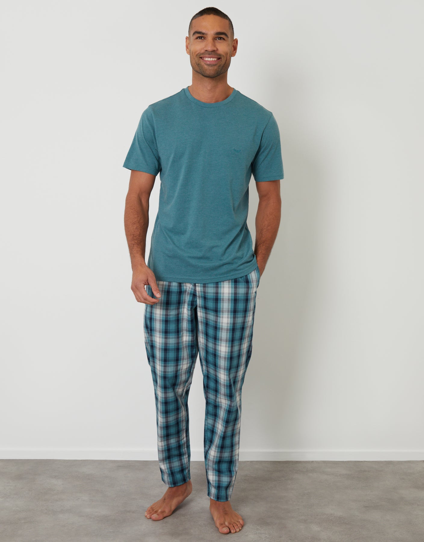 Teal Green Check T-Shirt & Bottoms Pyjama Set