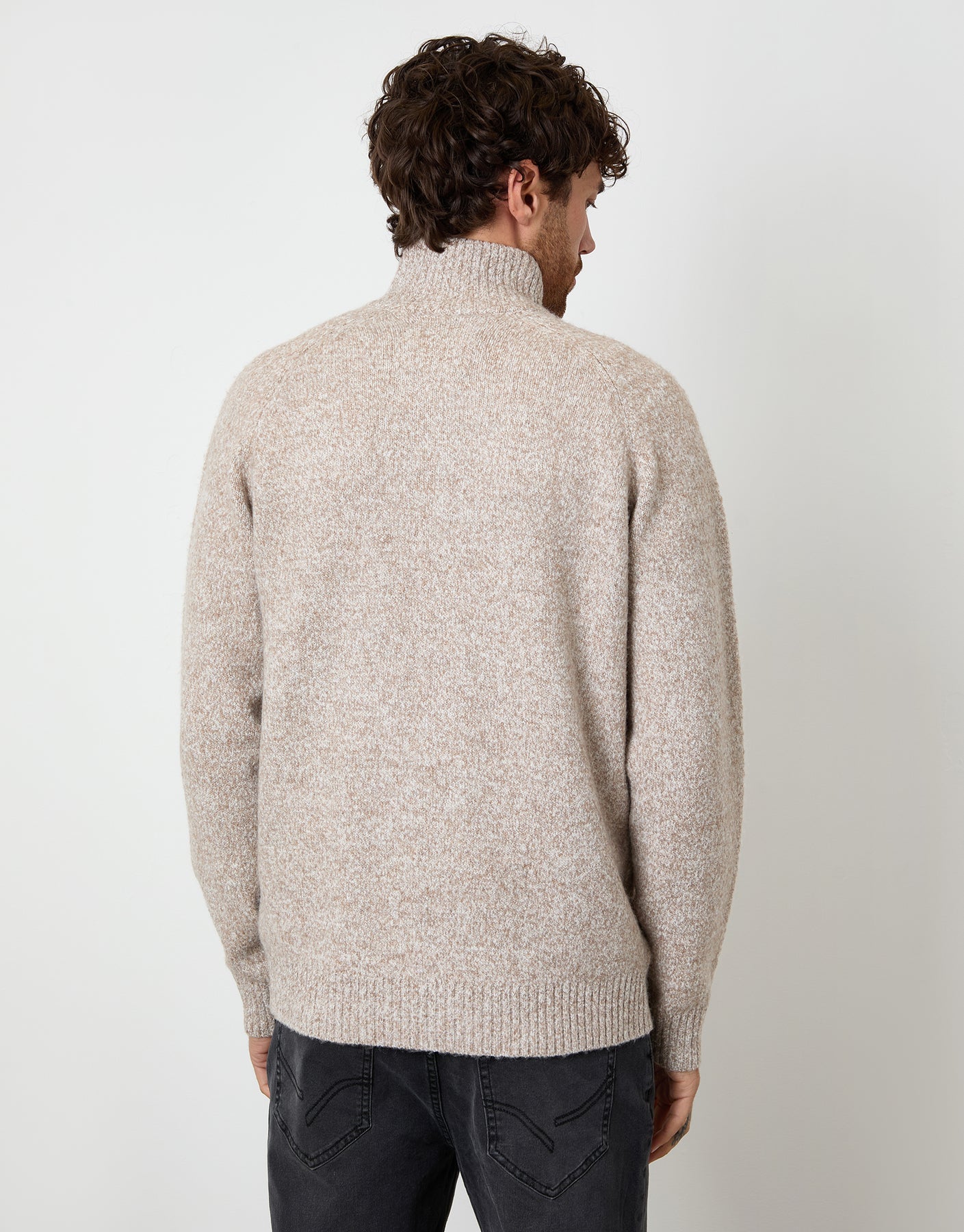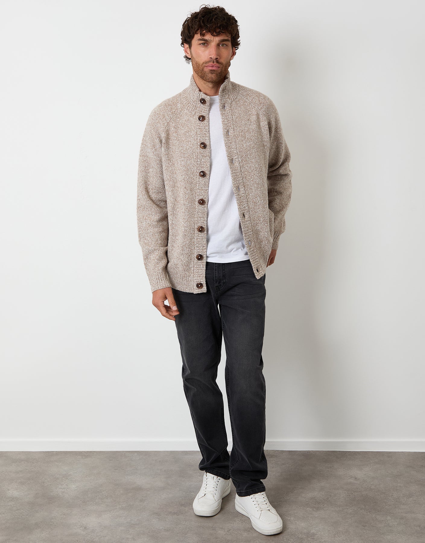 Taupe Funnel Neck Button Up Knitted Cardigan