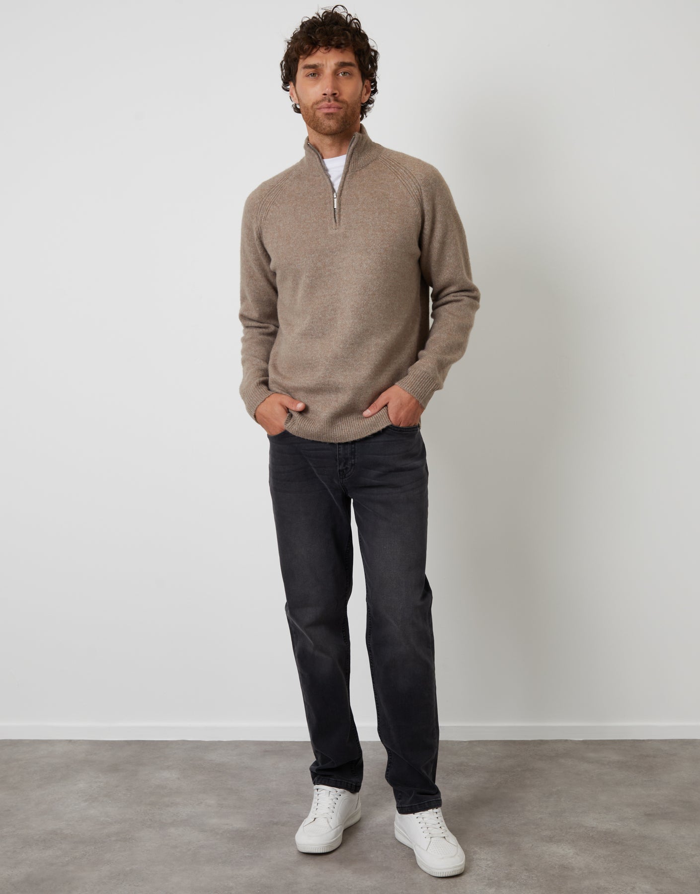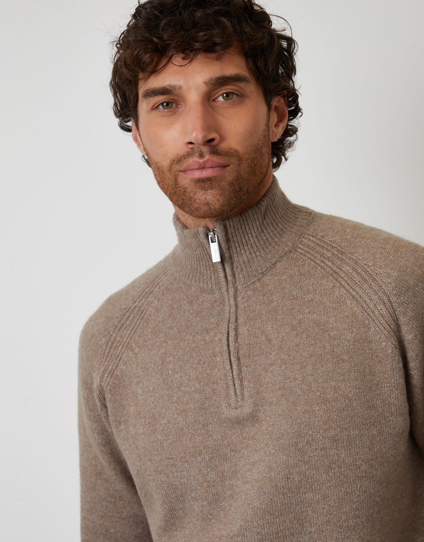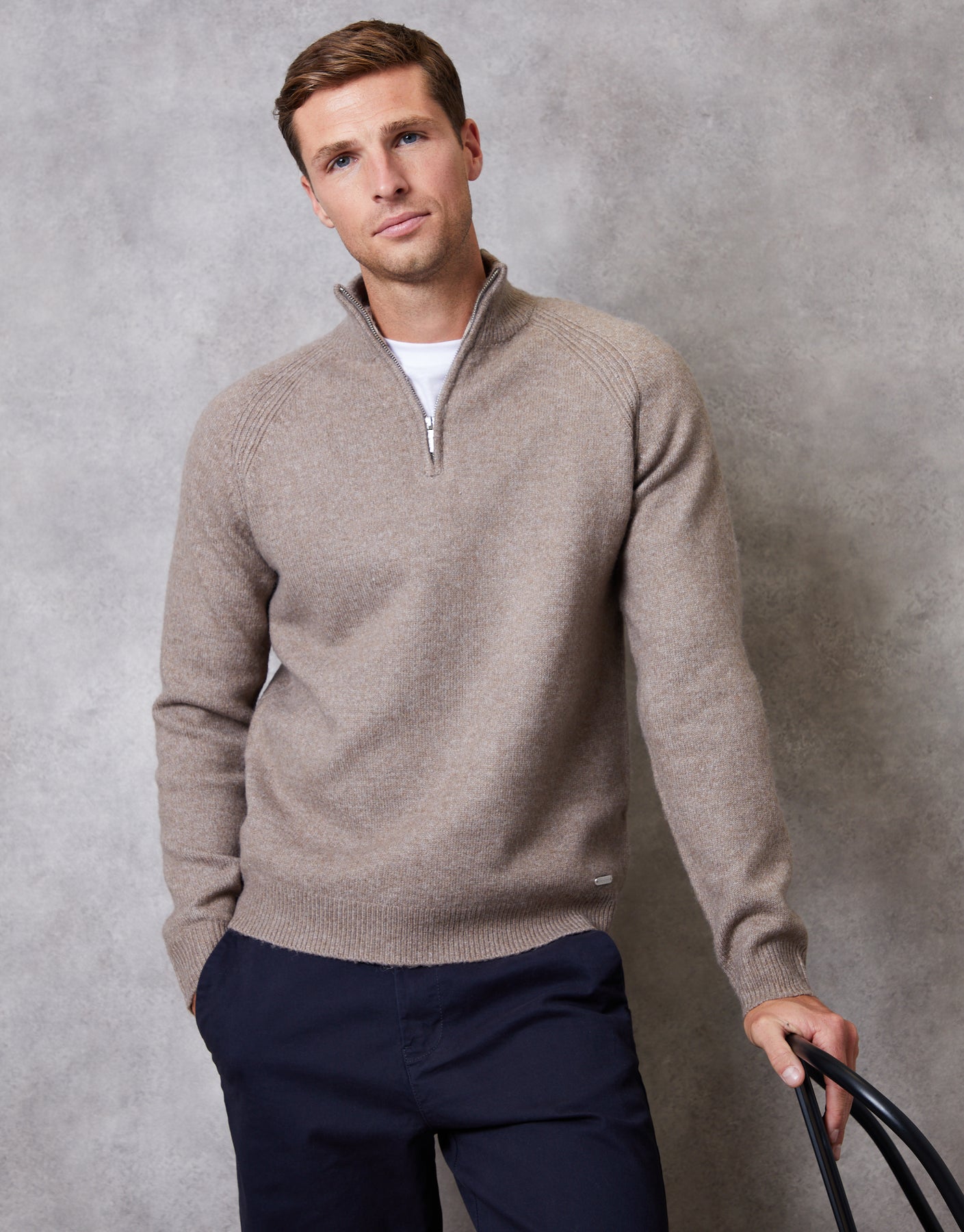 Taupe Raglan Rib Quarter Zip Knitted Jumper