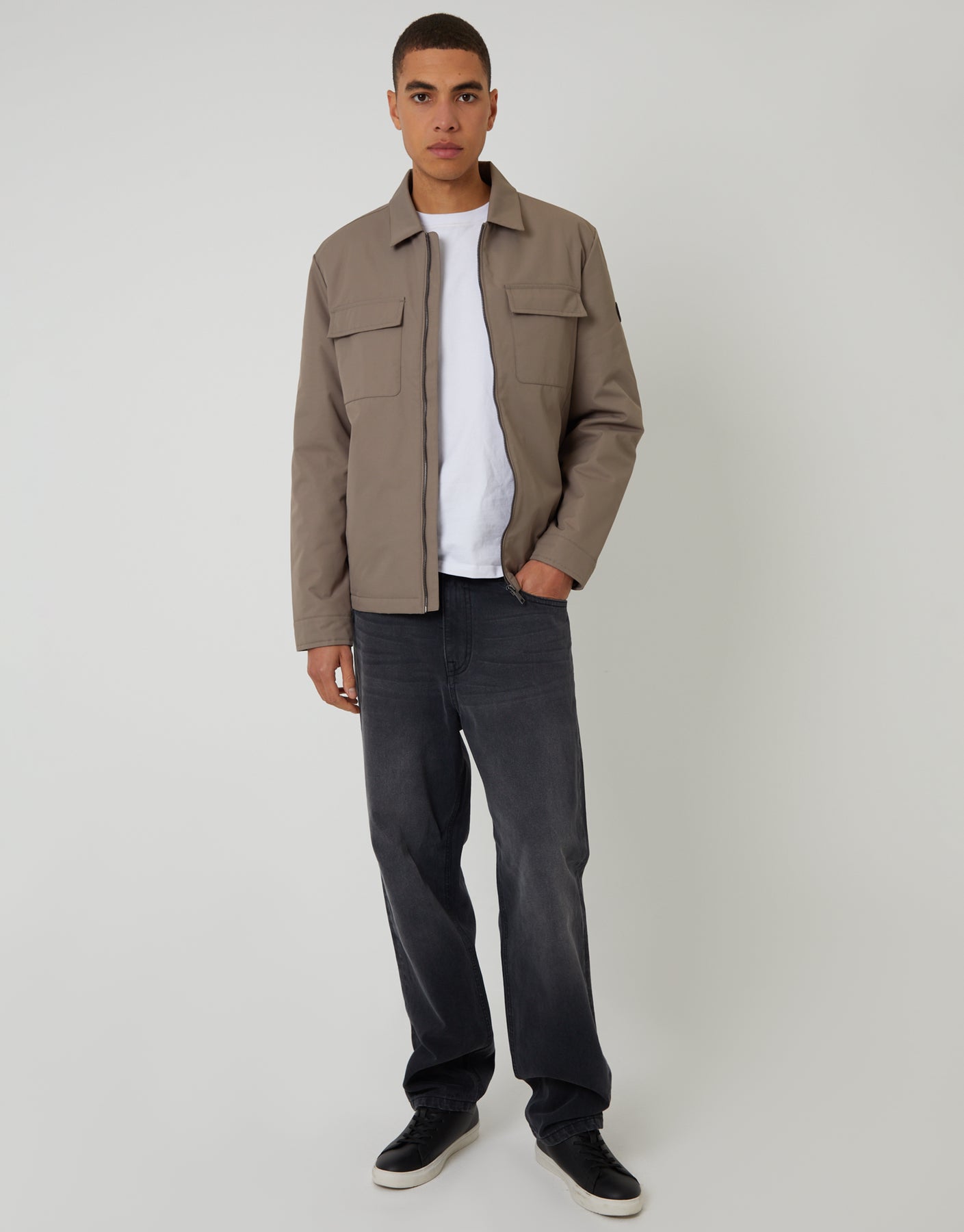Taupe Showerproof Lightweight Collared Zip Up Jacket